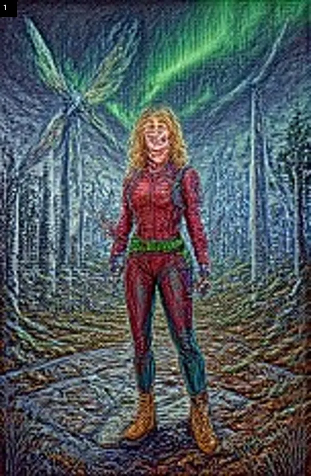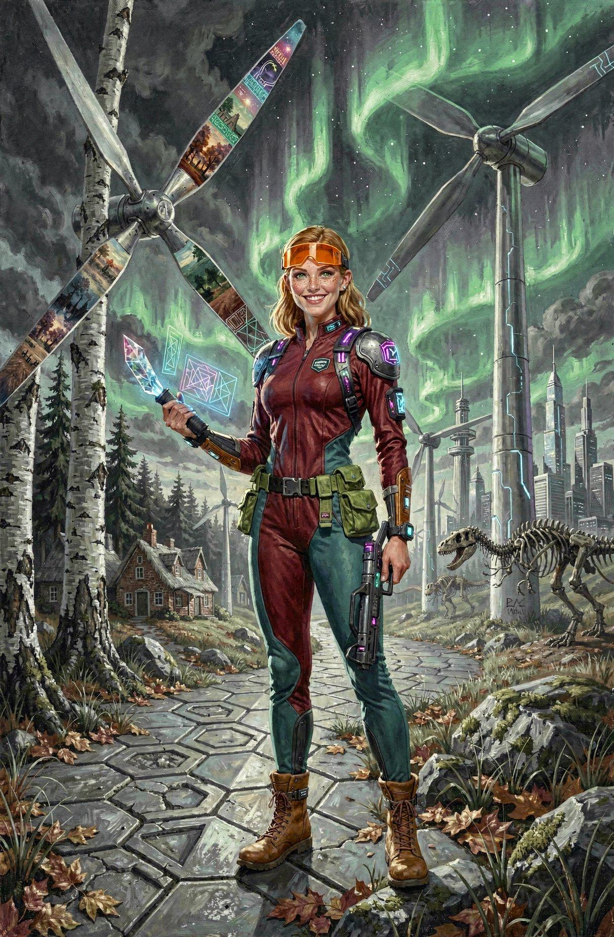 Art styles were pulled from Juan’s Very Large List, grepping for the word “epic” and deleting a few artists where that was a false positive. I used the prompt-enhancing system prompt recommended by Z-Image Turbo to flesh out the random locations, plus two of my own targeted system prompts to generate clothing and physical details, plus a final LLM pass to do general cleanup. This would have been agonizingly slow on the Mac, so I ran it on the gaming PC in between image-generation runs (because SwarmUI and LM Studio both think they have the GPU to themselves, trying to run them at the same time blows out the VRAM, even though they should fit).