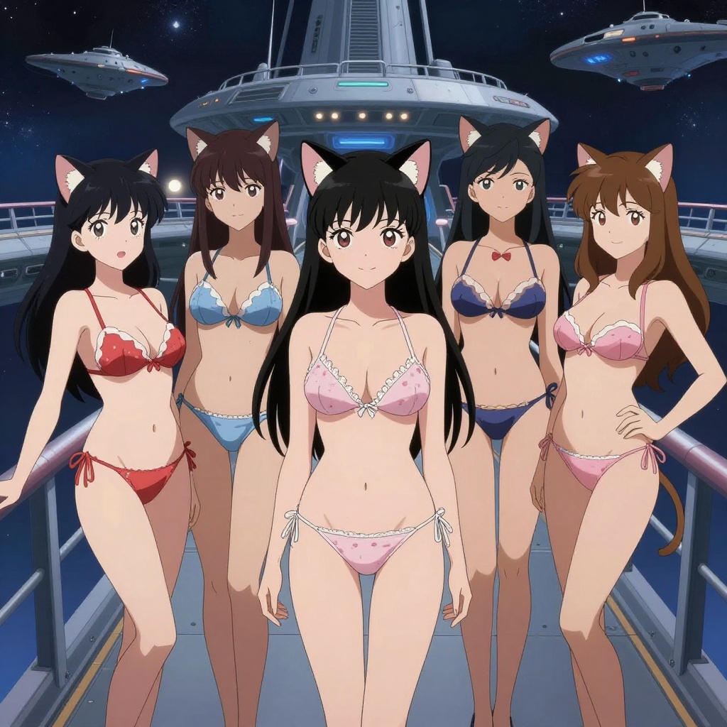 Qwen seems to default to this style of cartoon art unless you push it hard in another direction; fortunately, I like it for just goofing around. I left the layout open, but specifically requested each gal’s action and the tropical gym setting, as well as requesting different hair styles and body shapes. Sadly, I also had to explicitly request that they all had two ears, but I could not come up with an incantation that put all four in sharp focus; the poor gal on the treadmill was always a bit fuzzy.