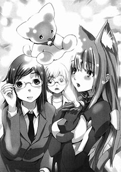 - Chaika is clearly identified as a brunette here (チャイカと呼ばれたブルネットの猫耳少女), and this is repeated in book 7 (ブルネットの髪をツインテールにした、ちんちくりんのボディ……チャイカ), but the artist consistently draws her with silver hair, starting with the color cast picture in book 4. Speaking of which, Jens is drawn as a blonde, and Antonia's hair is a bit green.