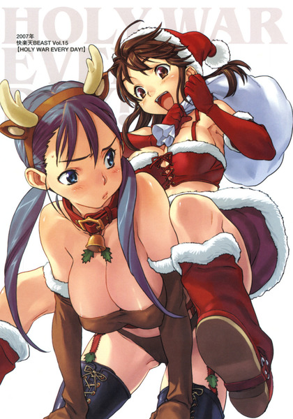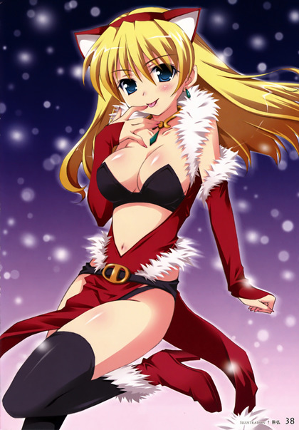 7 days ago was my birthday (50th, as it happens) and 7 days from now is Christmas, so it’s time for a special triple-length cheesecake post, and the theme is naughty and nice anime girls riding the sleigh, hurrying down the chimney, jingling bells, making merry, raising spirits, putting lumps in stockings, visiting the north pole, unwrapping their presents, and giving joy to the world. Some of those are euphemisms, but as usual, you’ll have to do your own Gelbooru searches to find the more intimate images.