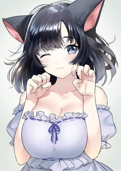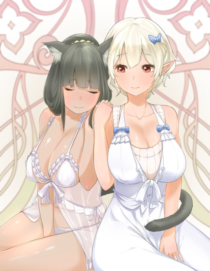 For some reason, it’s difficult to find not-entirely-unsafe images combining the 猫耳 and 極上の乳 tags, so most of this set ended up hidden in the NSFW section.