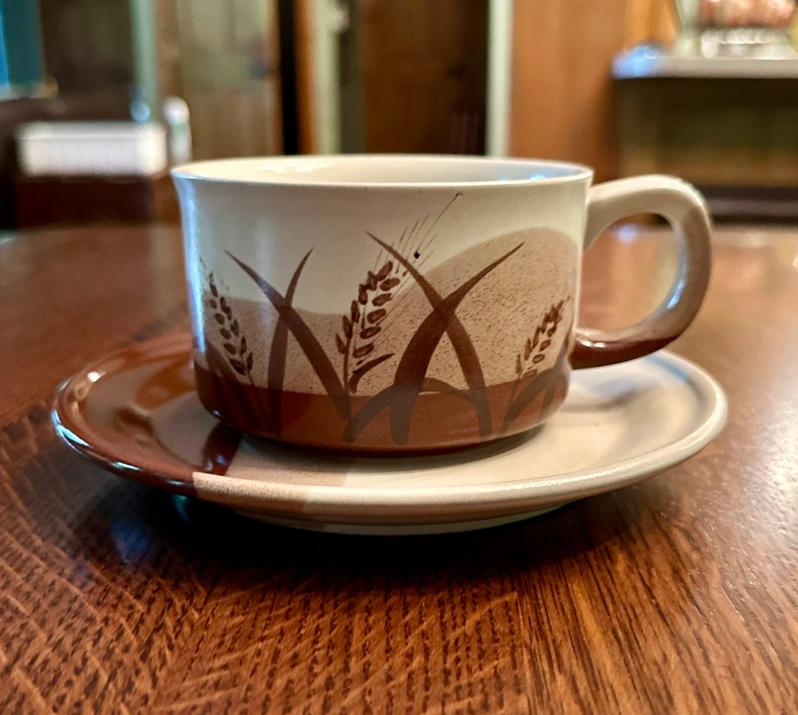 Otagiri is a mildly-collectible brand of handmade dinnerware, made by a variety of Japanese kilns from the late Fifties through the mid-Nineties. Several American designers were hired to provide Hallmark-ish designs (not for tiki mugs). It’s widely available on Etsy and eBay at reasonable prices, and every once in a while new old stock turns up in Japanese warehouses, often from patterns that never made it to the US (Umami Mart used to sell coffee mugs they found in the warehouse of Kenzan Ceramics, some of which had Otagiri branding).