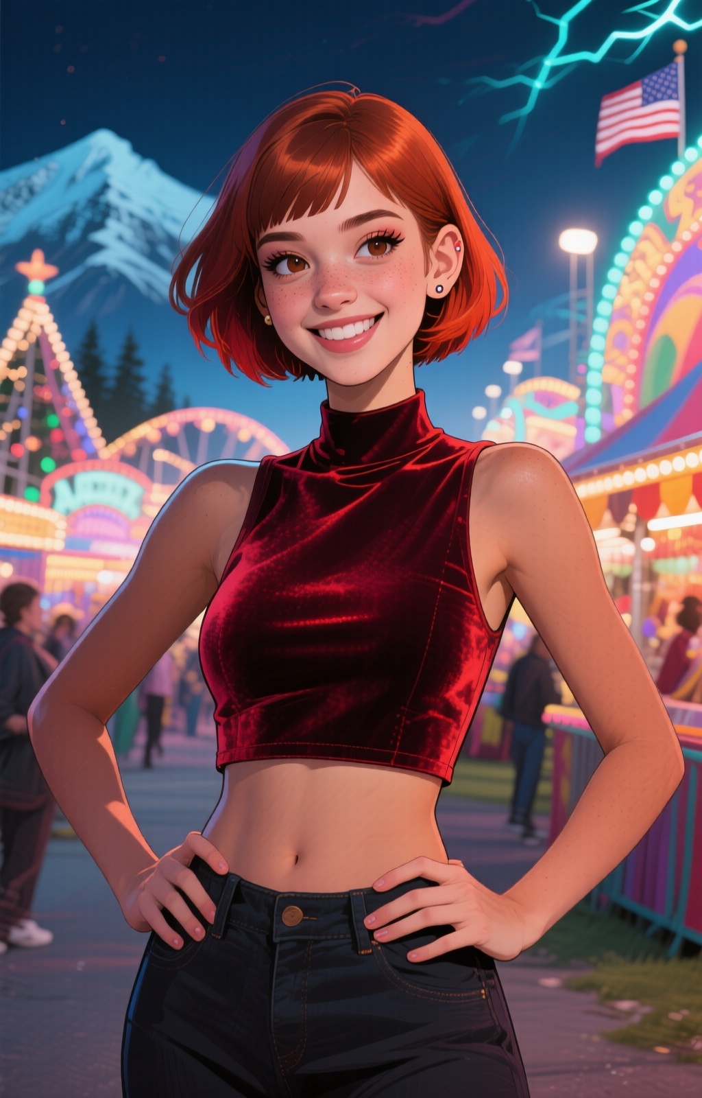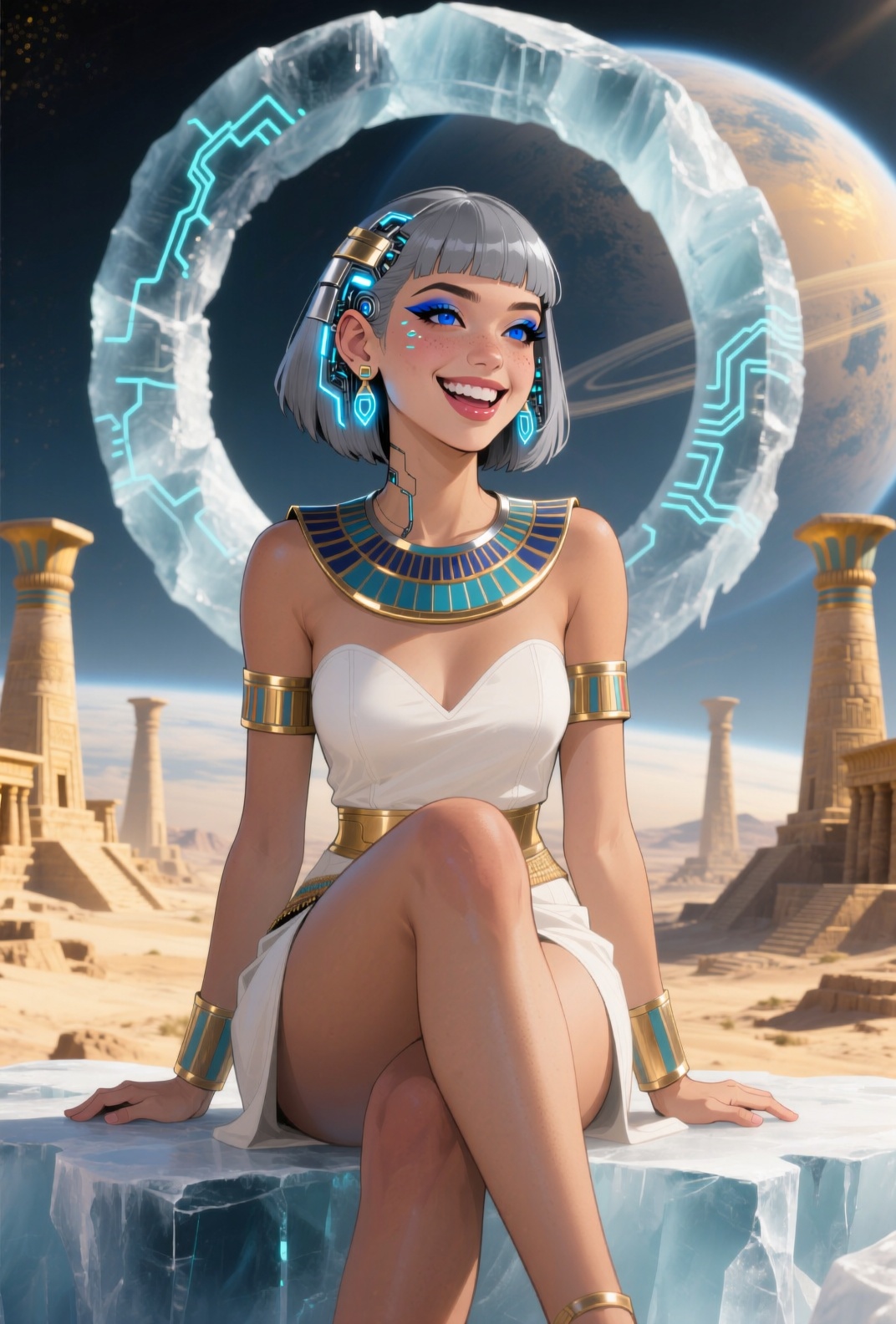 Today’s randomized babes are based on SFnal settings and costumes provided by Claude AI. It had no difficulty grasping the concepts of “vivid, exotic sci-fi locations” and “sexy retro-futuristic costumes for women”, generating detailed descriptions that Qwen Image was able to run with.