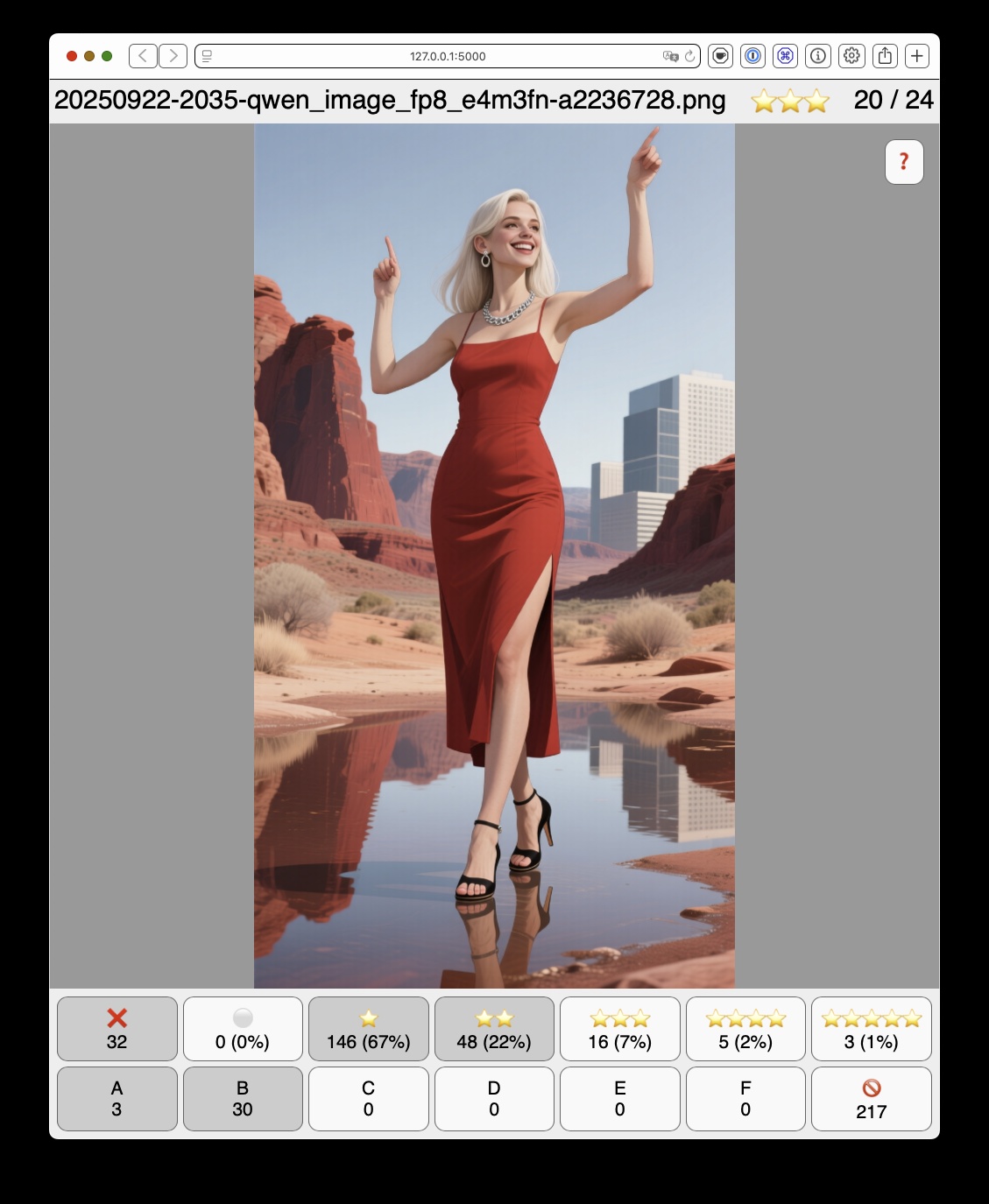 Or more precisely, “cheesecake by deathmatch”. Hey, I’ve got the silly thing, might as well use it to speed up processing my dusty pile of saved girlie-pics. While playing with “AI” tools, I downloaded Windsurf, ordered it to clean up the code for maintainability and then add a new function to export the currently-visible list to the clipboard (press L). Now I can quickly rank the images, use a flag to split them into NSFW and less-NSFW, and then toggle the flag to get two distinct export lists to pipe to my cheeseblogging prep scripts.