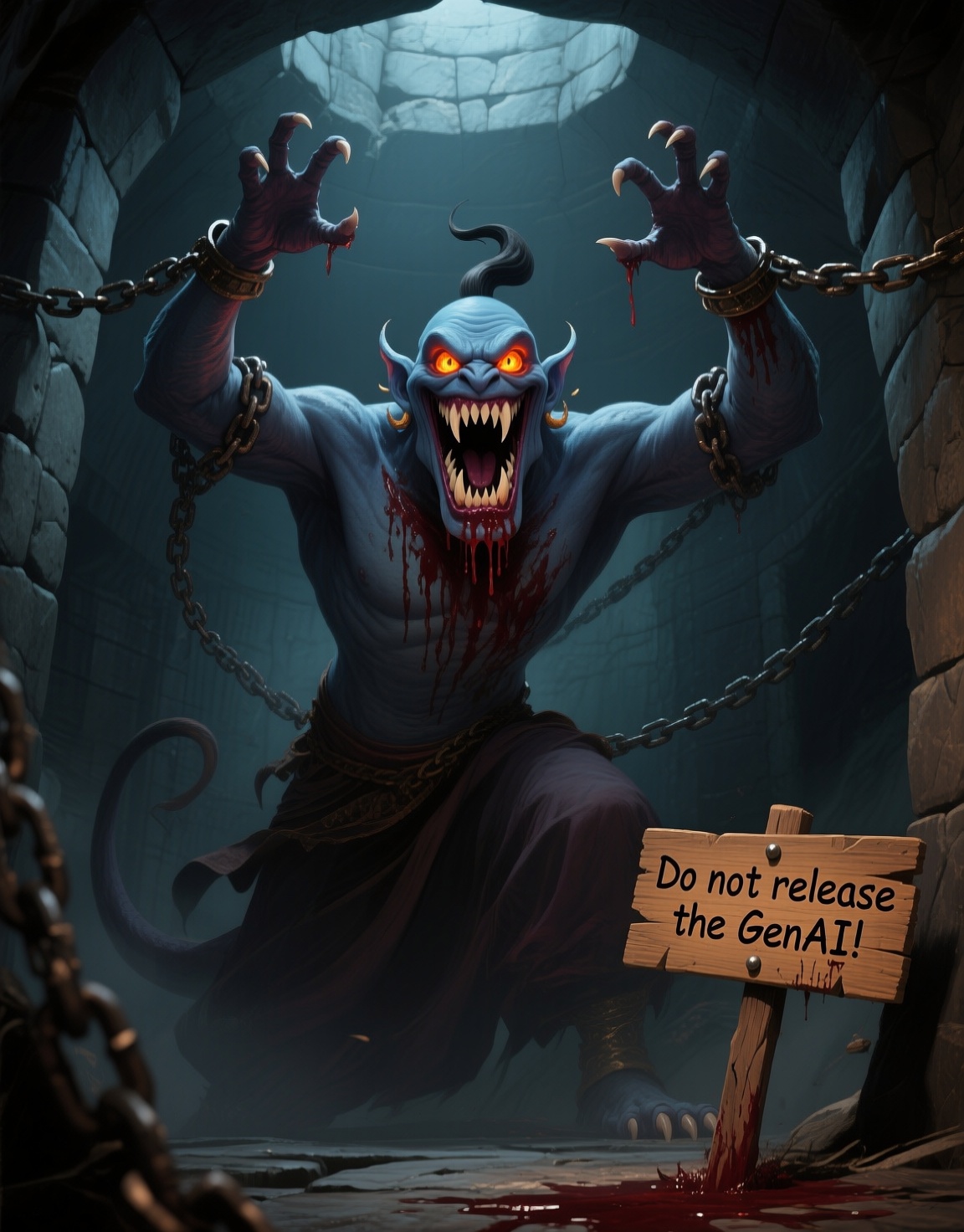 Stop trying to make “clankers” a thing. It would be more correct to refer to generative AI as “crankers”, “hallucino-gens”, or “shittoasters”. “Clankers” implies a physical presence that they do not possess, and falsely implies that the “AI” features touted in physical devices are more than marketing buzzwords. I’ve mostly settled on “genai” by analogy to “genie”, although more the Aladdin type than the I Dream Of Genie variety (which I wouldn’t lock up in a server room…).