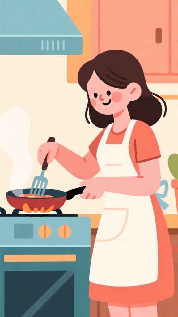TL/DR: mentioning eyes at all, even just their color, is enough to do it. The expressive LLM-generated mood descriptions I’ve been experimenting with were also contributing (and creating some contradictory pose instructions, which I’d already made a note to fix), but all it takes to turn “slightly-cartoonish illustration of a woman cooking” into pop-eyed anime is adding “with blue eyes”.