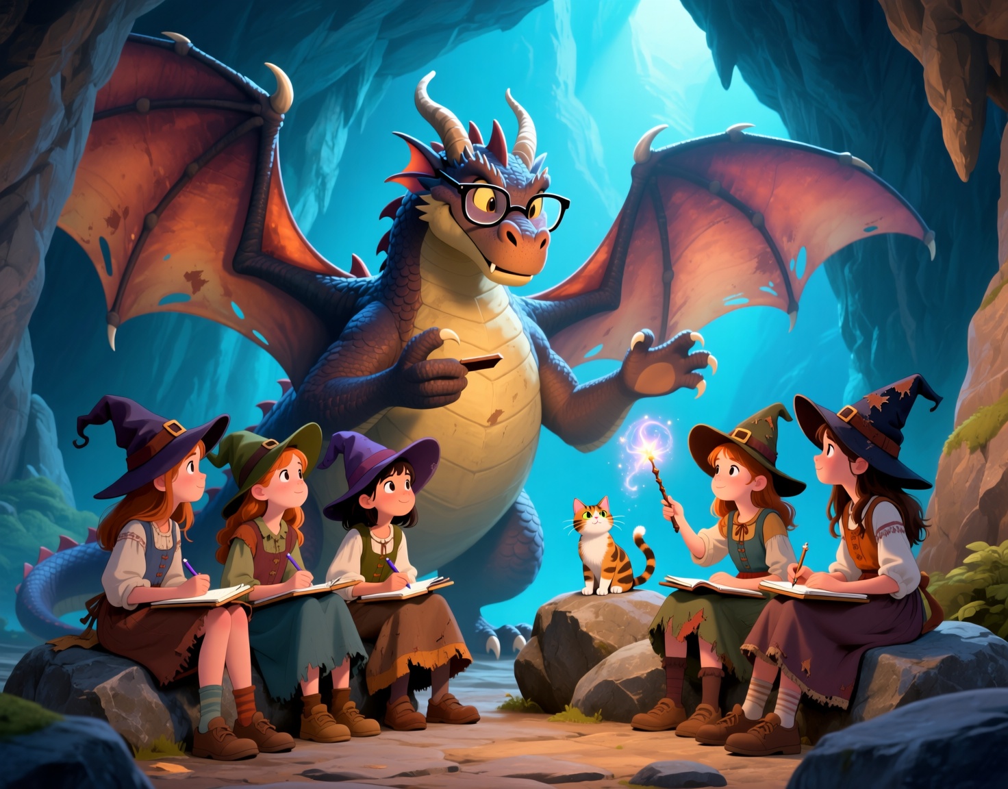 (file under annoying that I had to specify that the dragon had two wings, one on each side; Qwen has a habit of just not drawing limbs on the off side, triggering variation renders when I like a pic but can’t plausibly believe that the second arm/leg/wing is hidden behind the body. Also, there were size issues; it really wants to fit the entire dragon body into the frame while rendering the girls at a decent size, so in about two-thirds of my attempts, he was small enough that a little girl would make a filling meal)