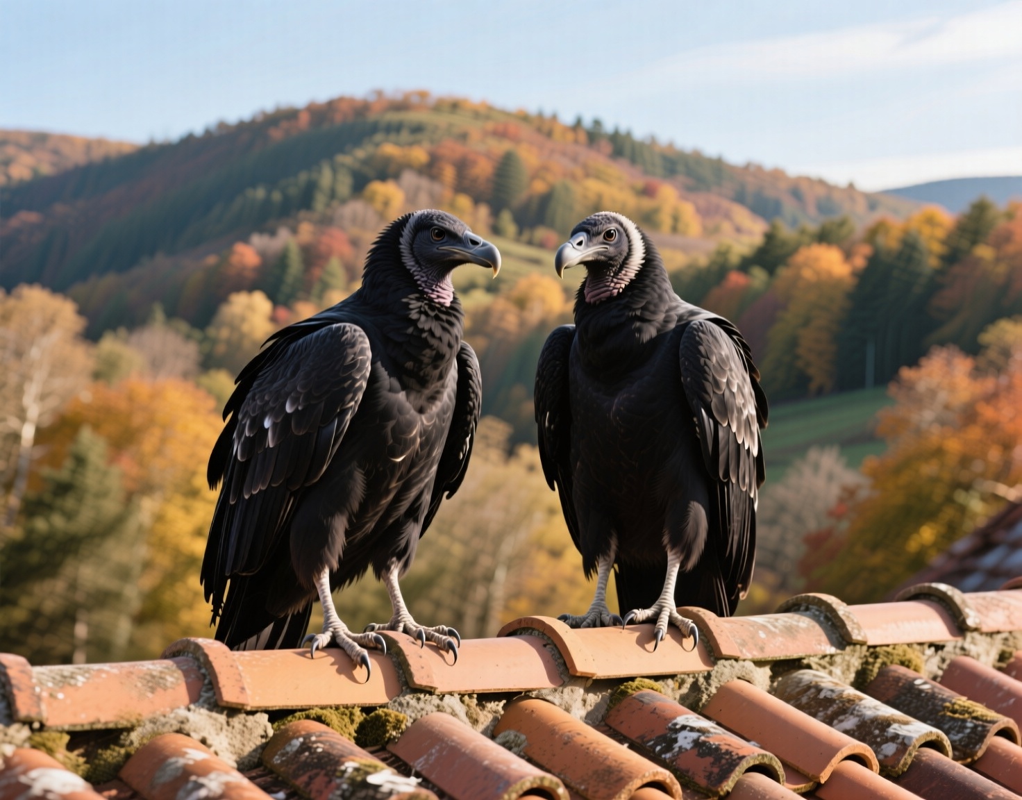 (not my actual roof vultures, who I’ve only gotten quick phone snapshots of a few times from the ground; the angle and perspective of this genai creation is nearly impossible to achieve outside of a studio with human-habituated birds. FYI, I was puzzled when I first tried to gen this pic, because I asked for buzzards and got falcons; turns out this is one of those America-versus-Europe things where we mean “turkey vulture” and they mean “pretty much any raptor”)