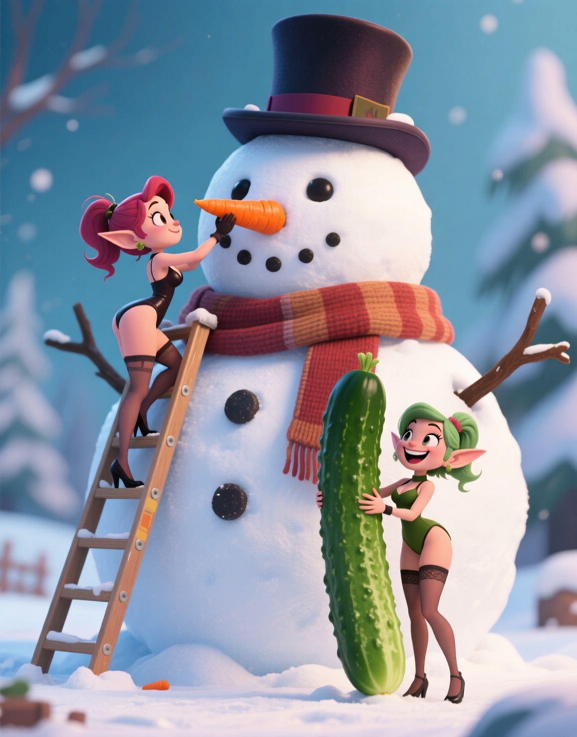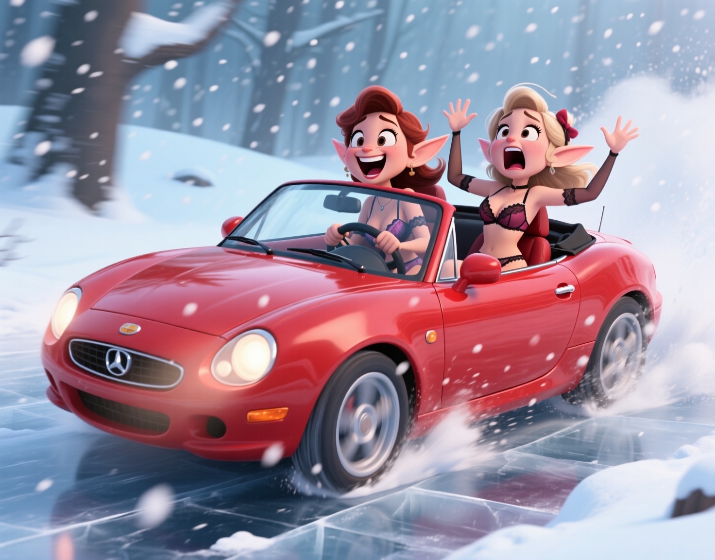 So why is it that the moment I start to describe them in detail, to add variety, my pinup gals go full-bore big-eye anime style? Either 2D or Frozen-style 3D?