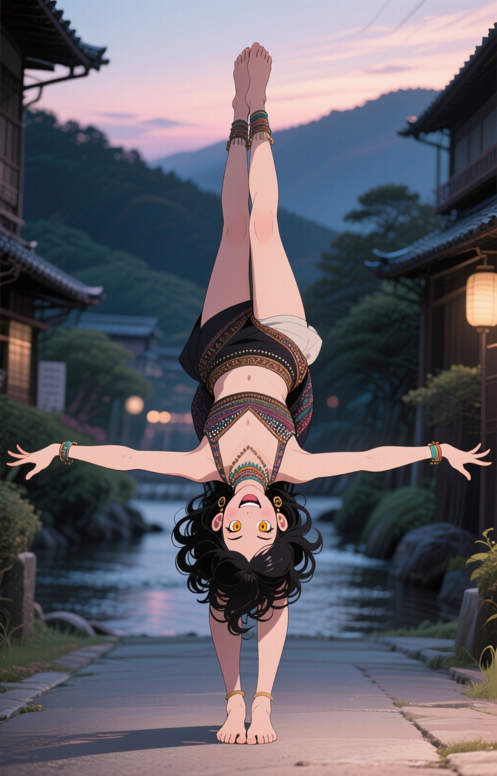 Qwen really, really hates inverted and mid-air poses. They’re statistically unlikely, so at every step, the diffusion process has a high chance of adding legs that touch the ground. Every step you add to the generation process increases the chance that a faint hint of shadow will be transformed into a second pair of legs.