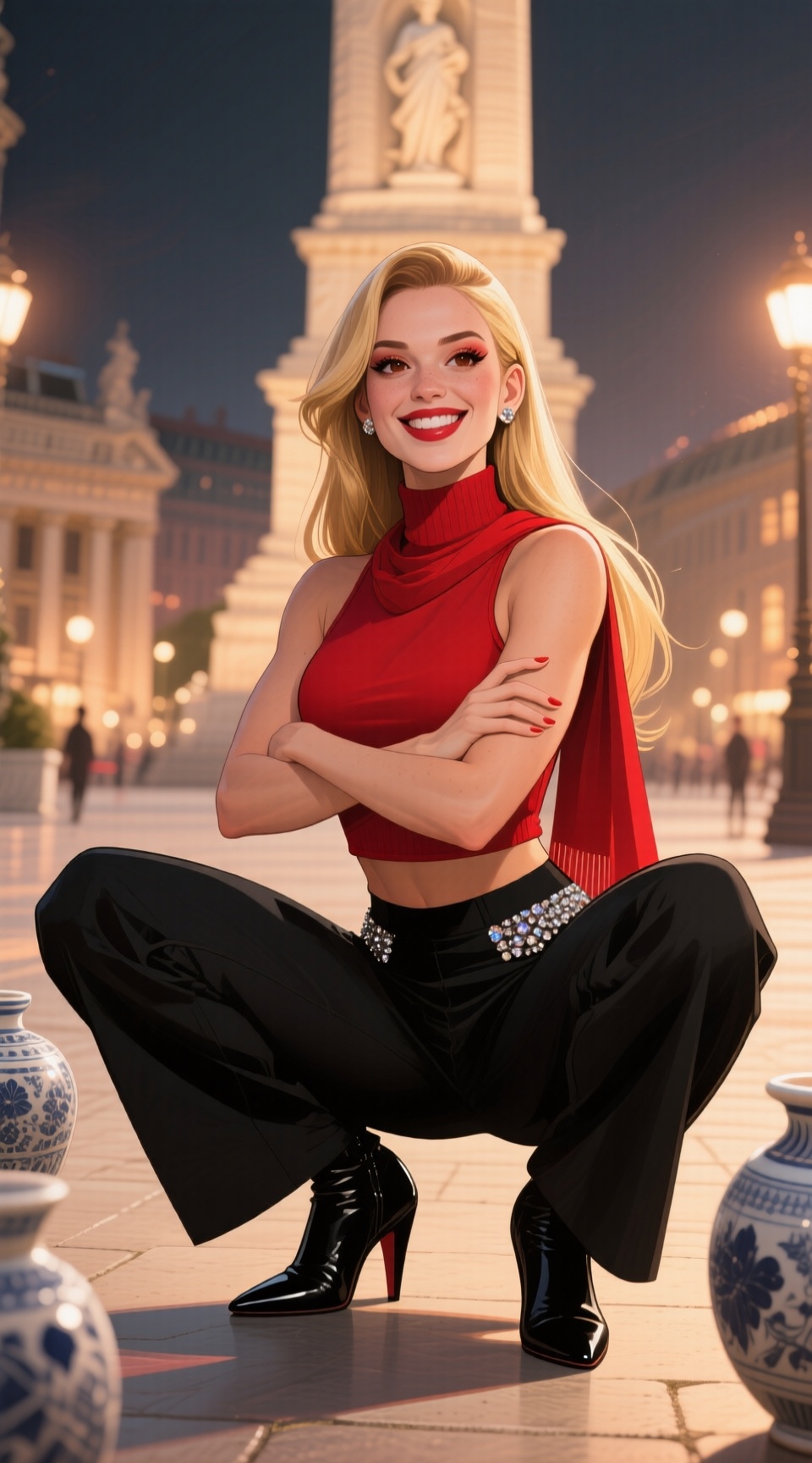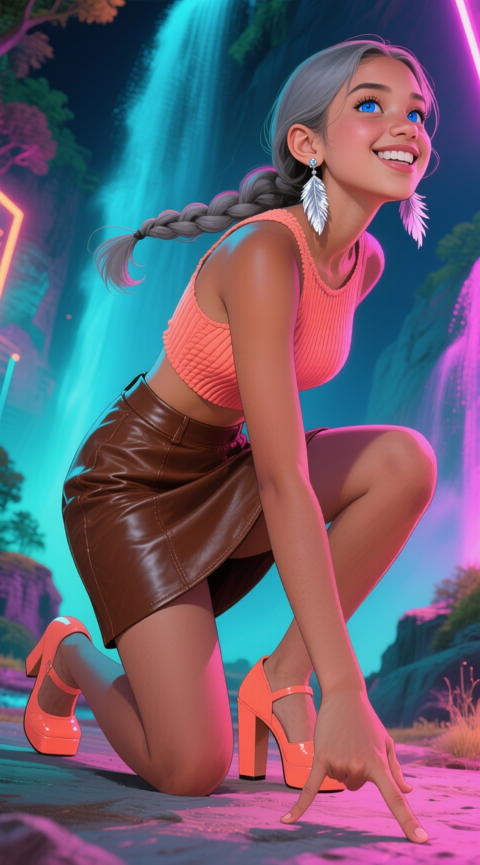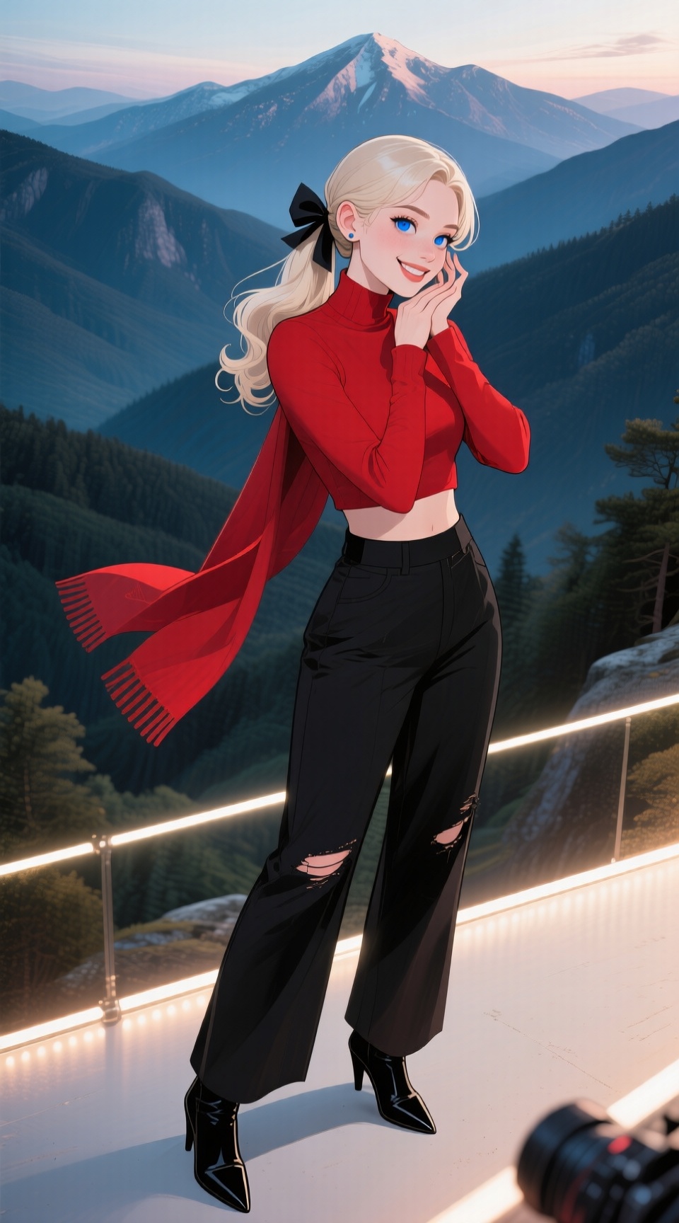Not only did the prompt enhancer invent random text, and even a random name for the girl, Qwen gave her two left feet. Or more precisely, a left foot and a left hoof.
