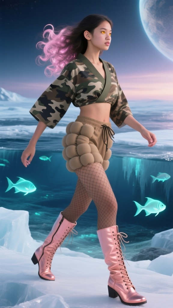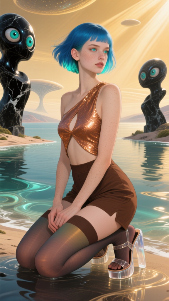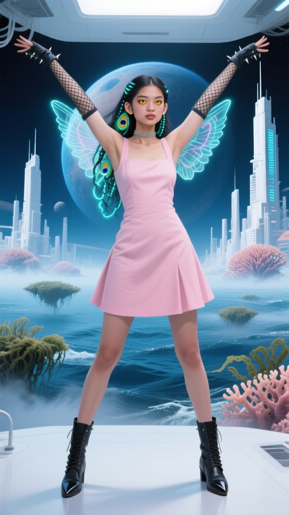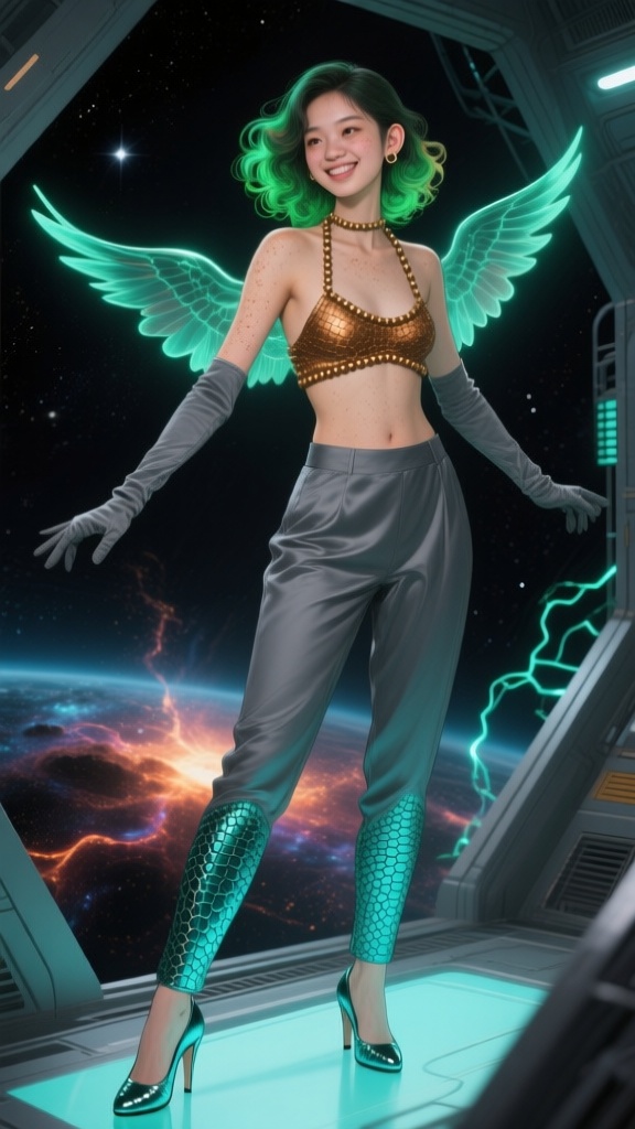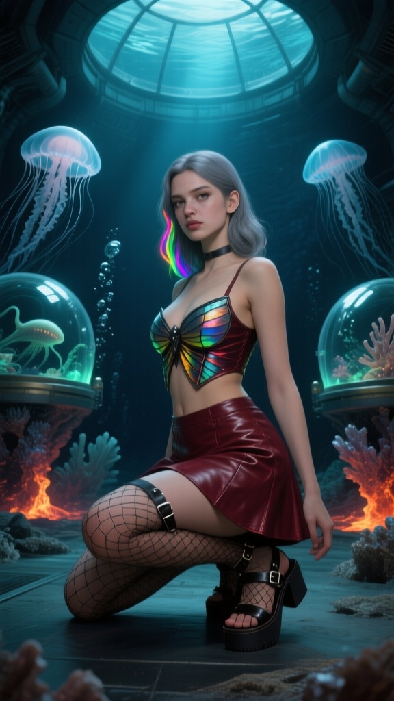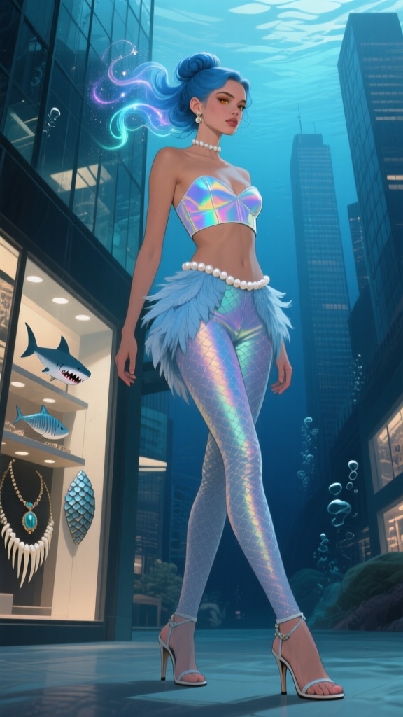 I think we’ve found the jewelry shop that supplies all those giant-sized women that Qwen keeps generating. As for the girl, how does she keep her hip feathers so fluffy underwater?
