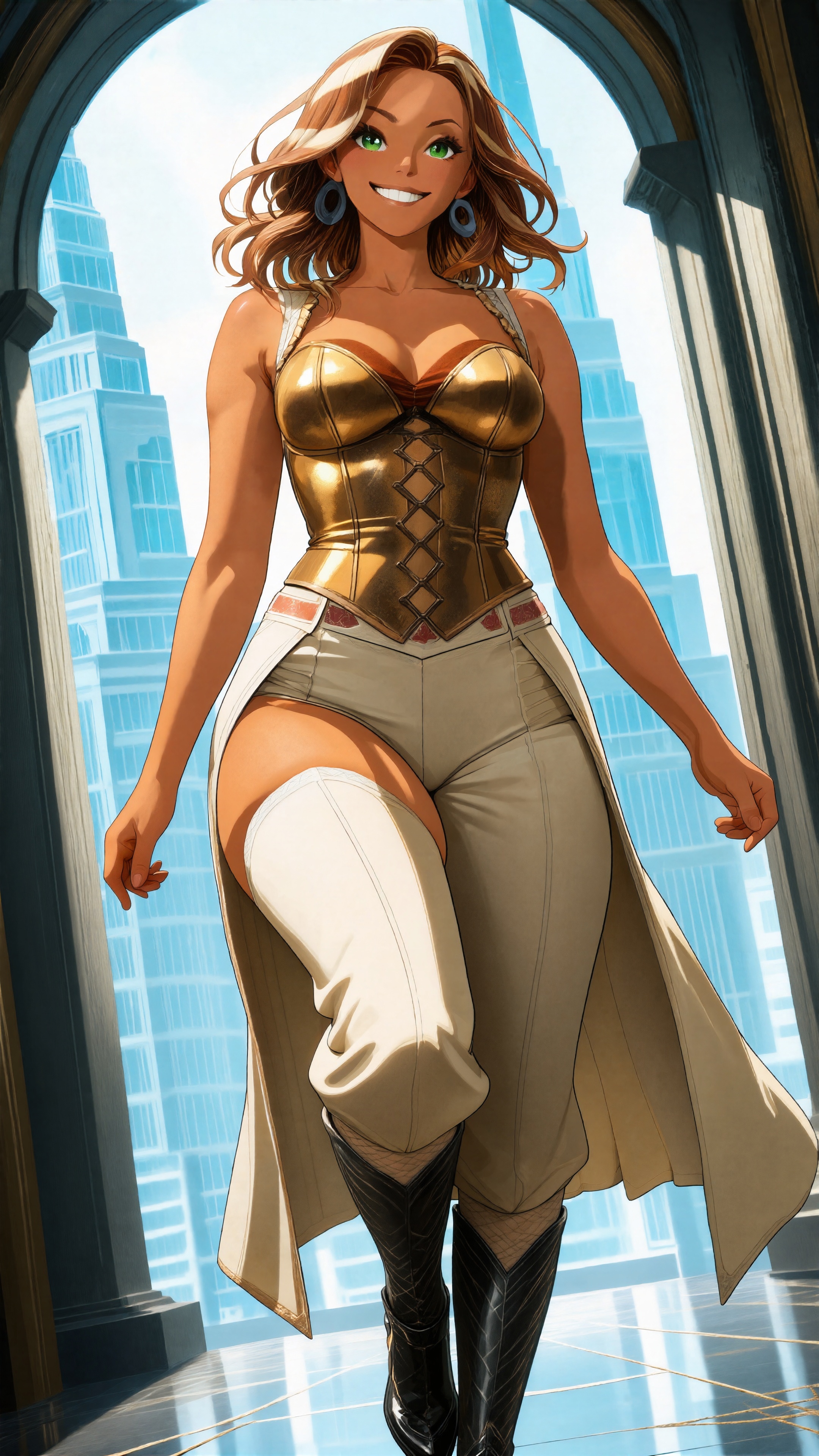 The white stripe down her forehead was invented by the refiner. It also changed her gloves to match the fishnet stockings, which I approve of.