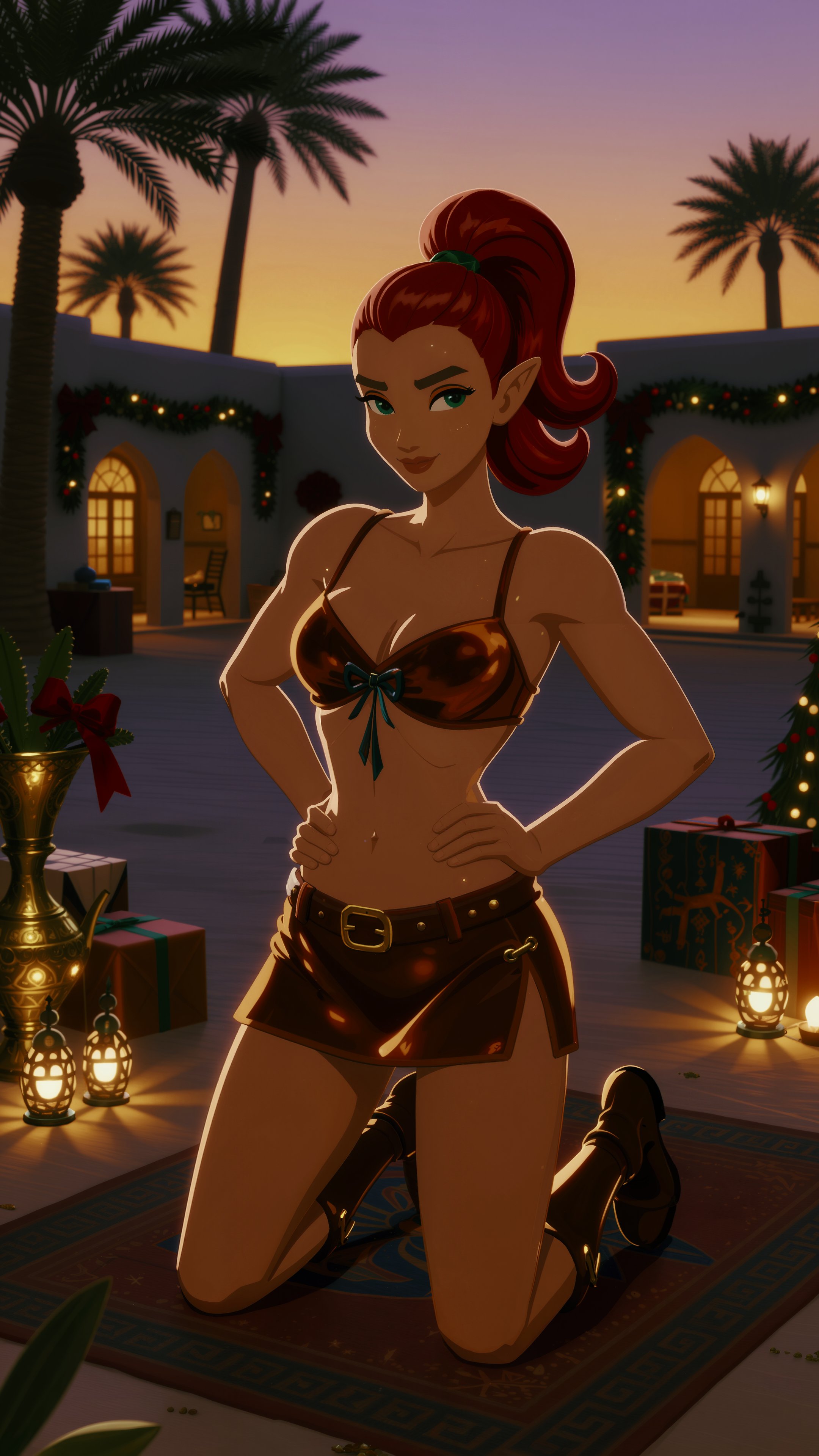 Sometime soon I should generate fantasy location and costume prompts, and perhaps some bunnygirl-friendly locations for Easter. Some of the Christmas locations look vaguely Hyrule-ish, but mostly not.