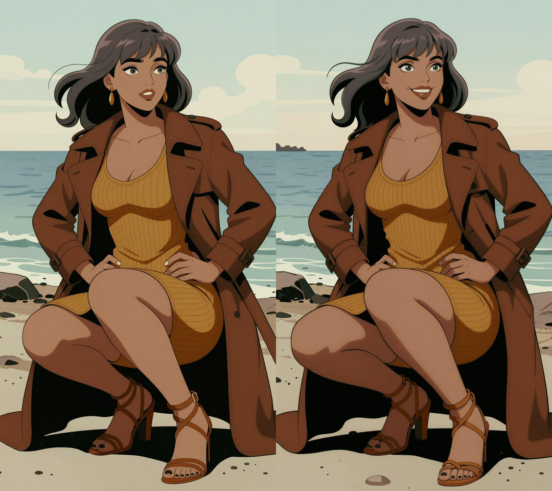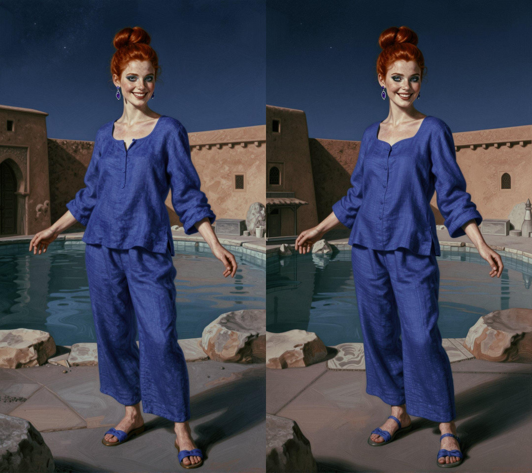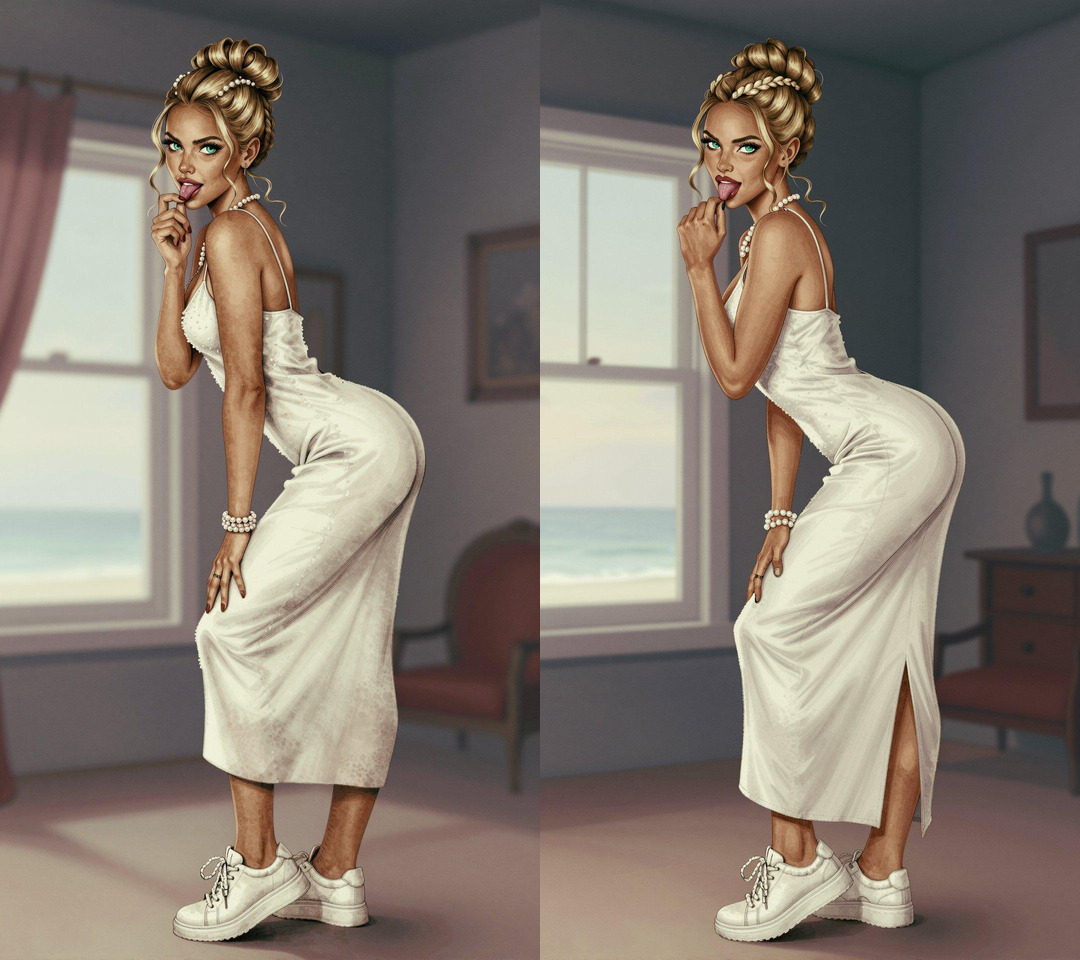 There were some interesting differences. Regenerating my square-peg pic changed the scene significantly, and some other regens had easily-visible changes, but I wanted a controlled test with no LoRAs. I used my standard batch vertical wallpaper settings and fed 20 random prompts to the original model, then fed the same parameters back through the script, changing only the model name.