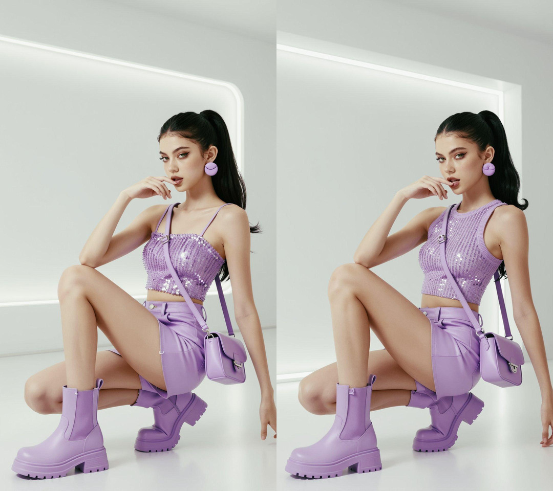 Both are fine, but A wins just because the fishnet connects top and bottom. No idea why there’s random text on the skirt, though.