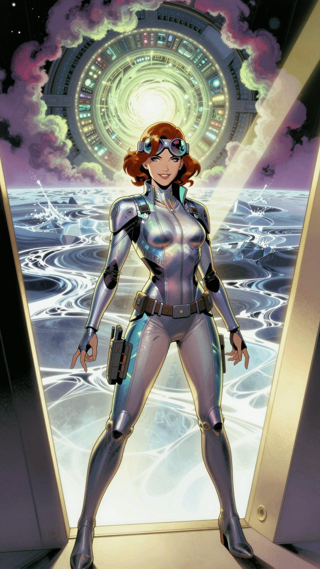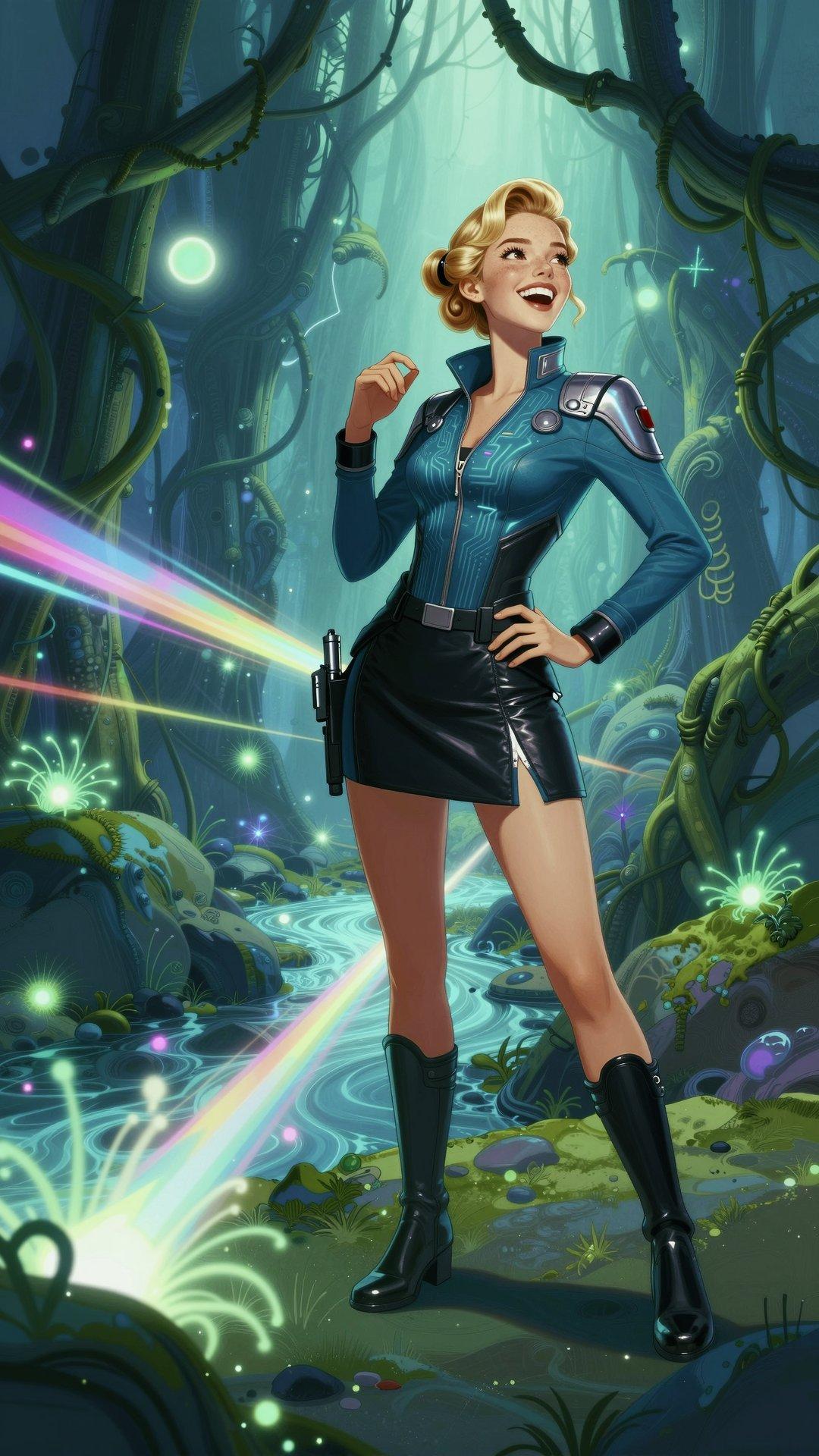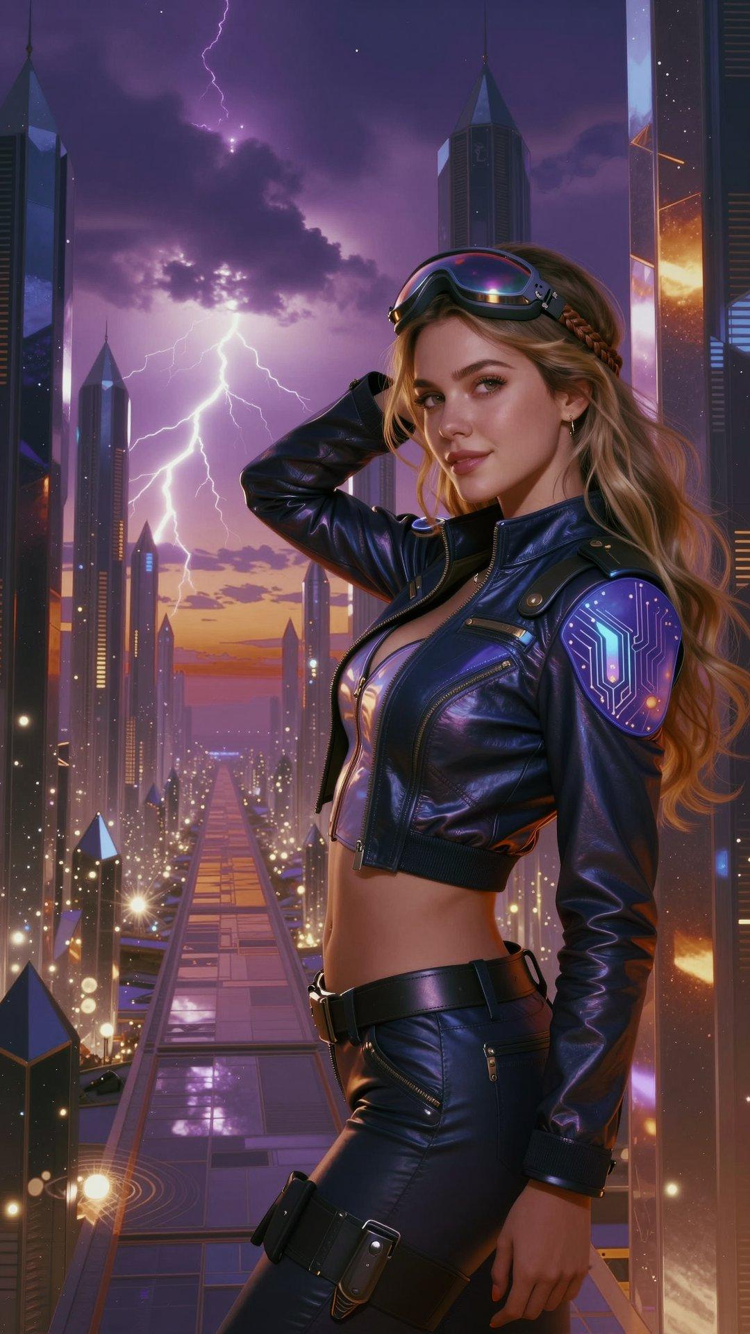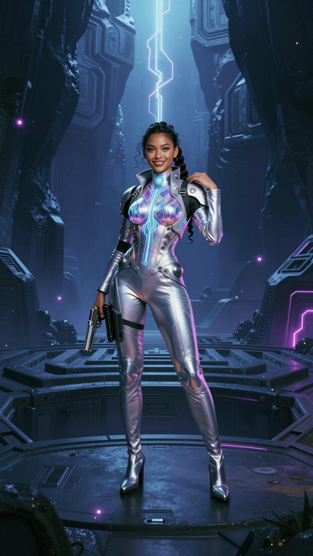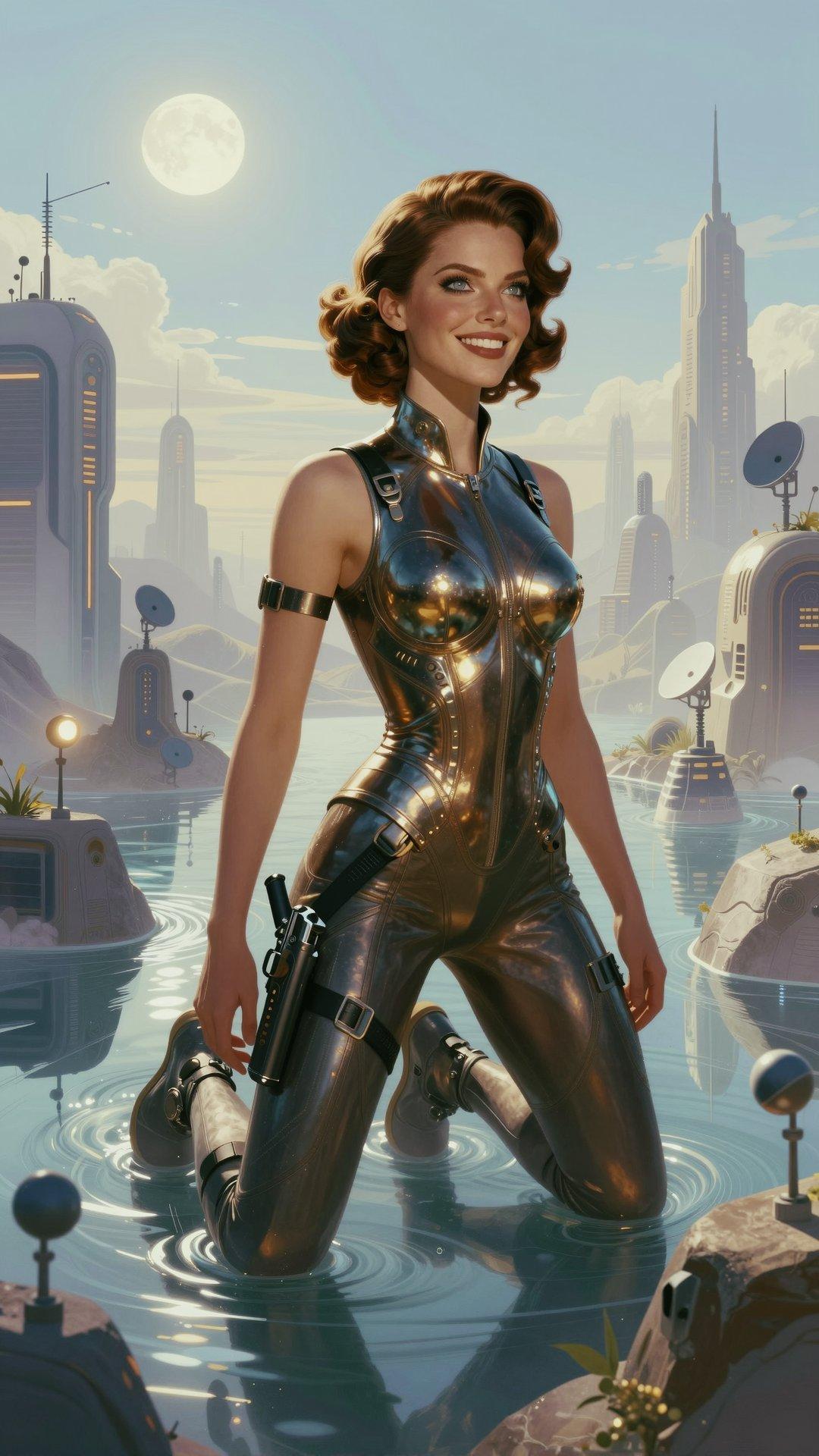She is wearing @<fashion: sexy retro-futuristic science fiction