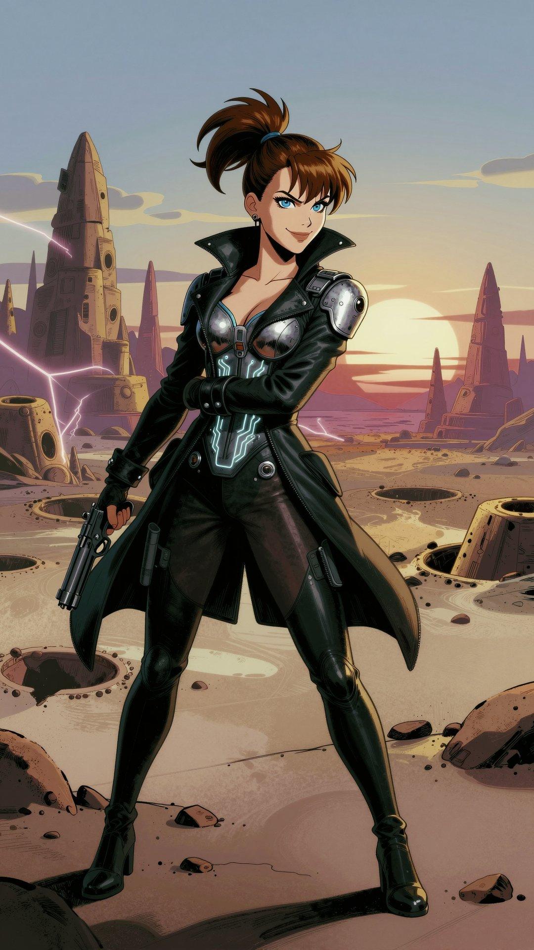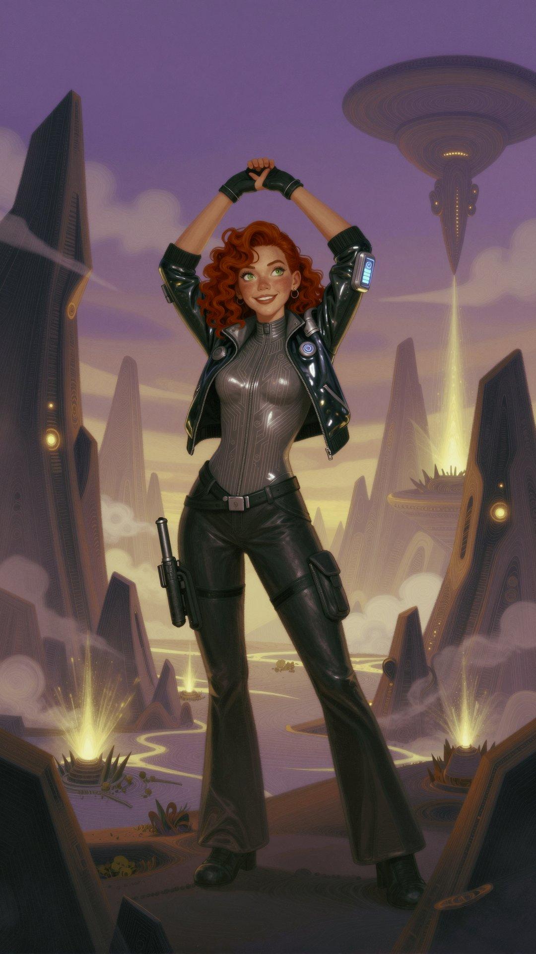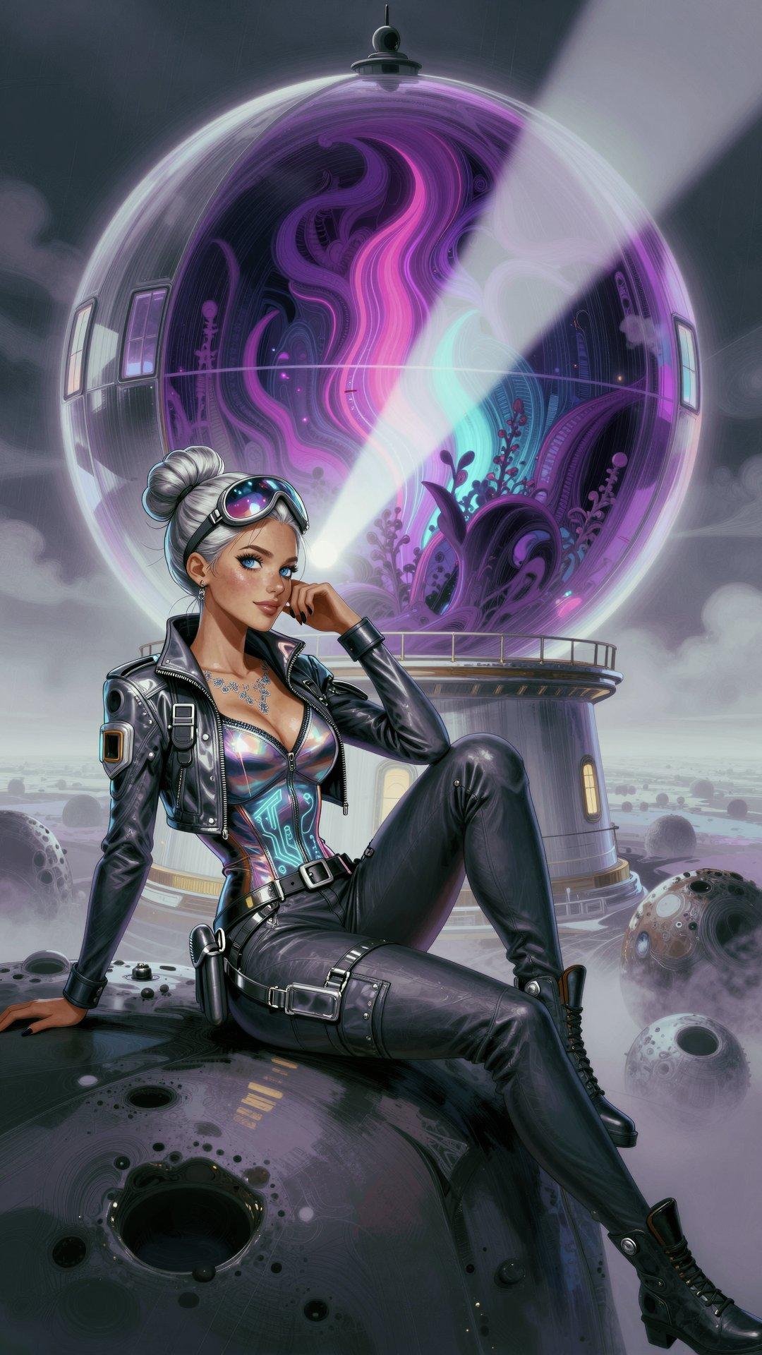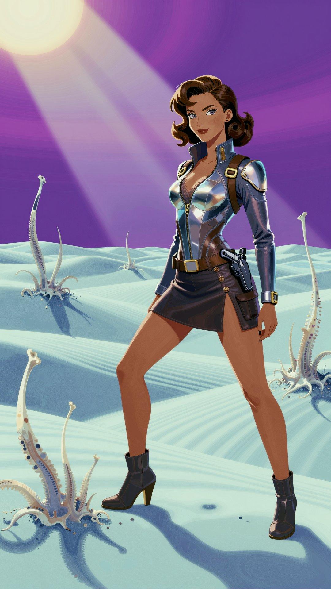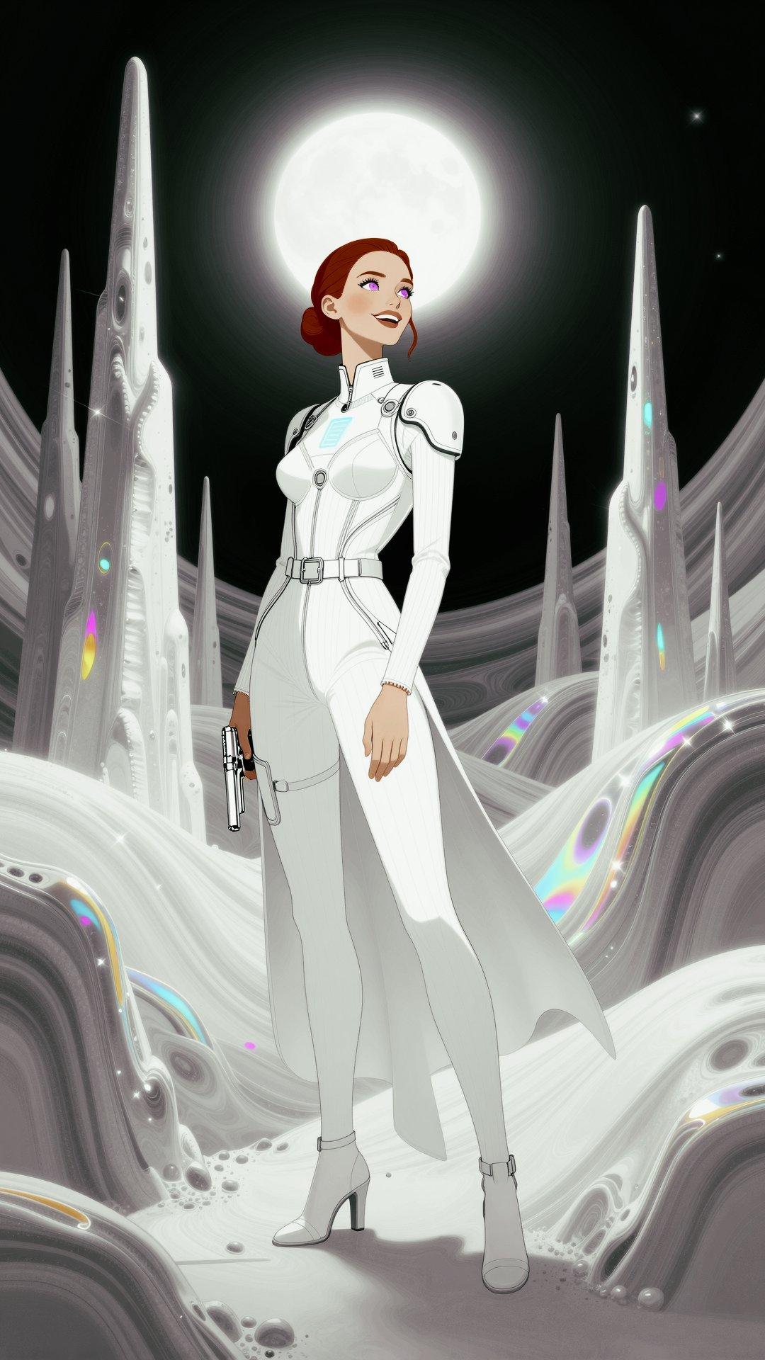 She is wearing @<fashion: sexy retro-futuristic science fiction