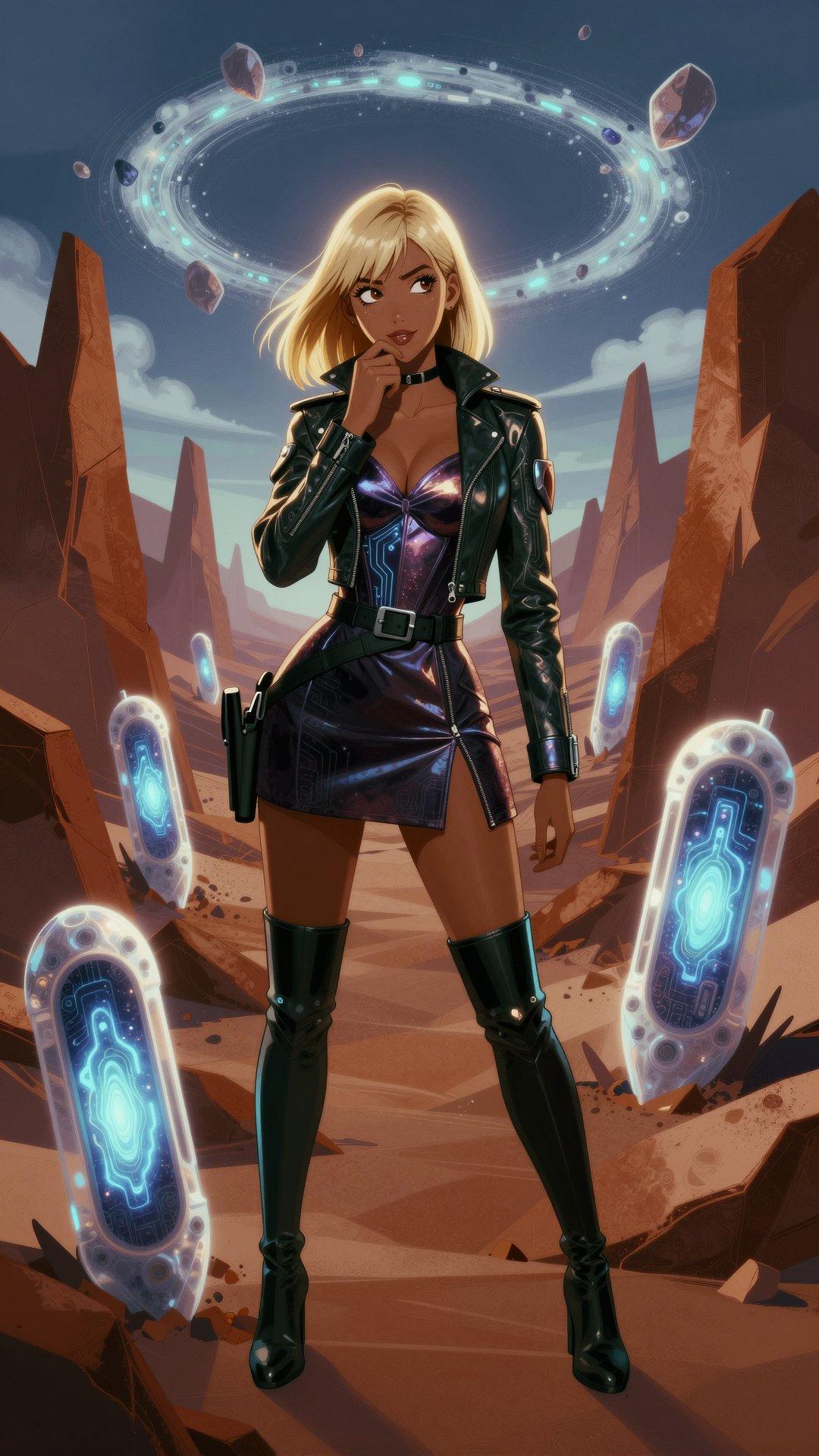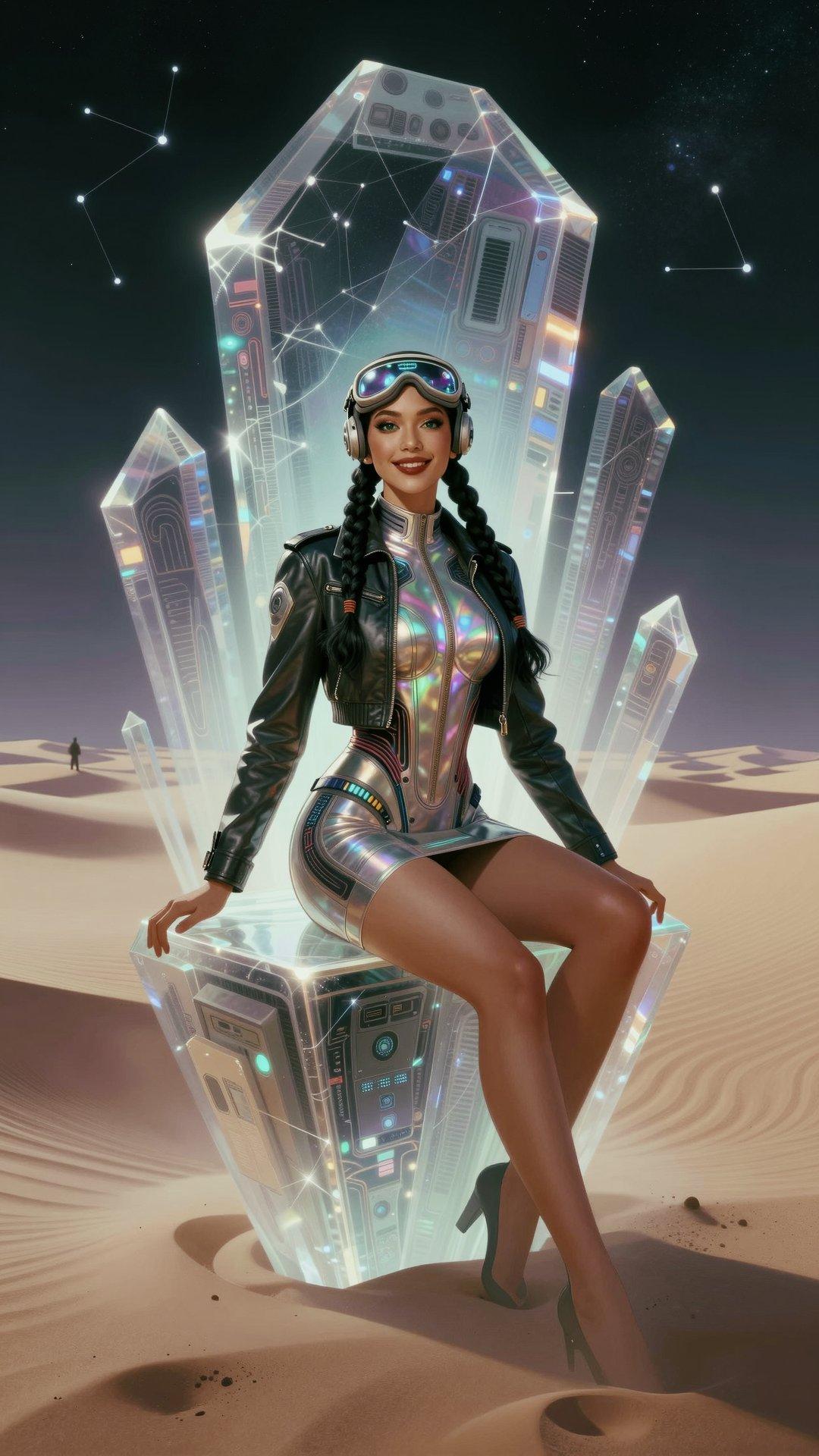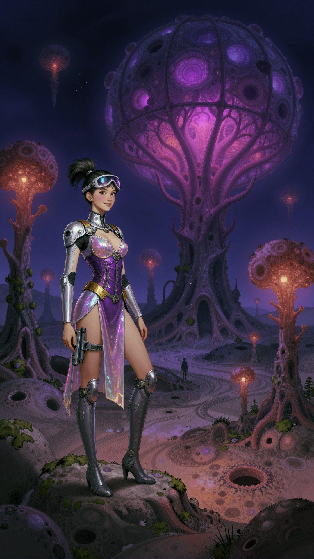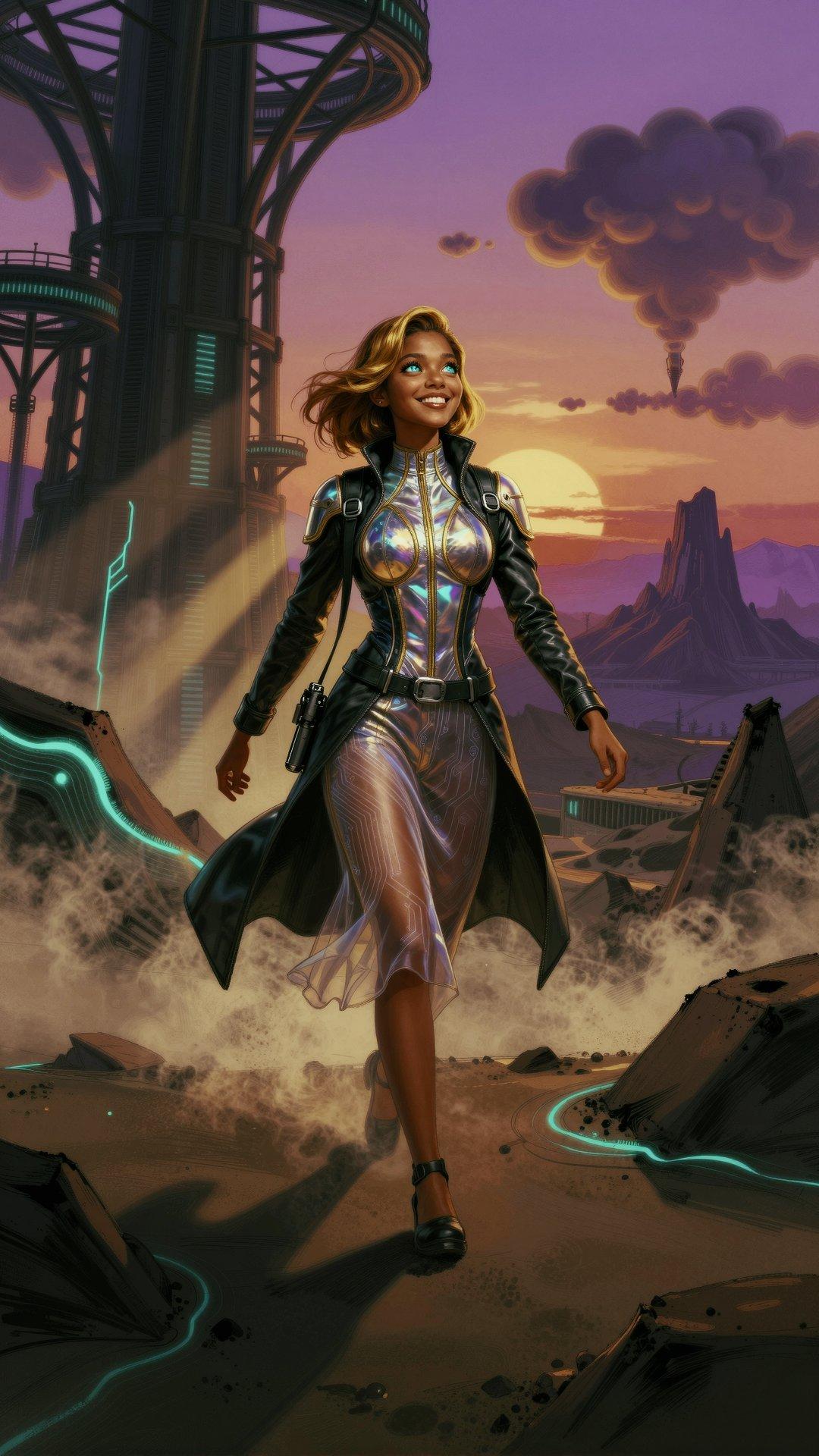 She is wearing @<fashion: sexy retro-futuristic science fiction