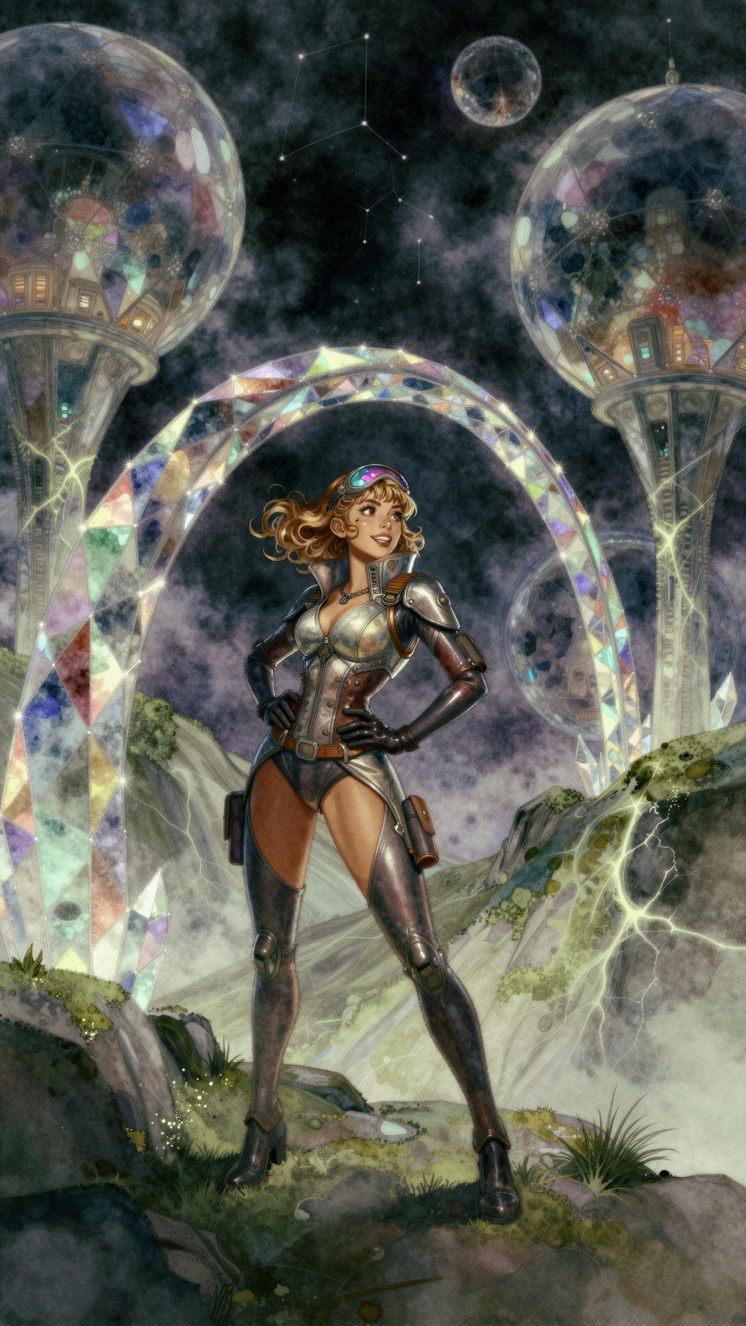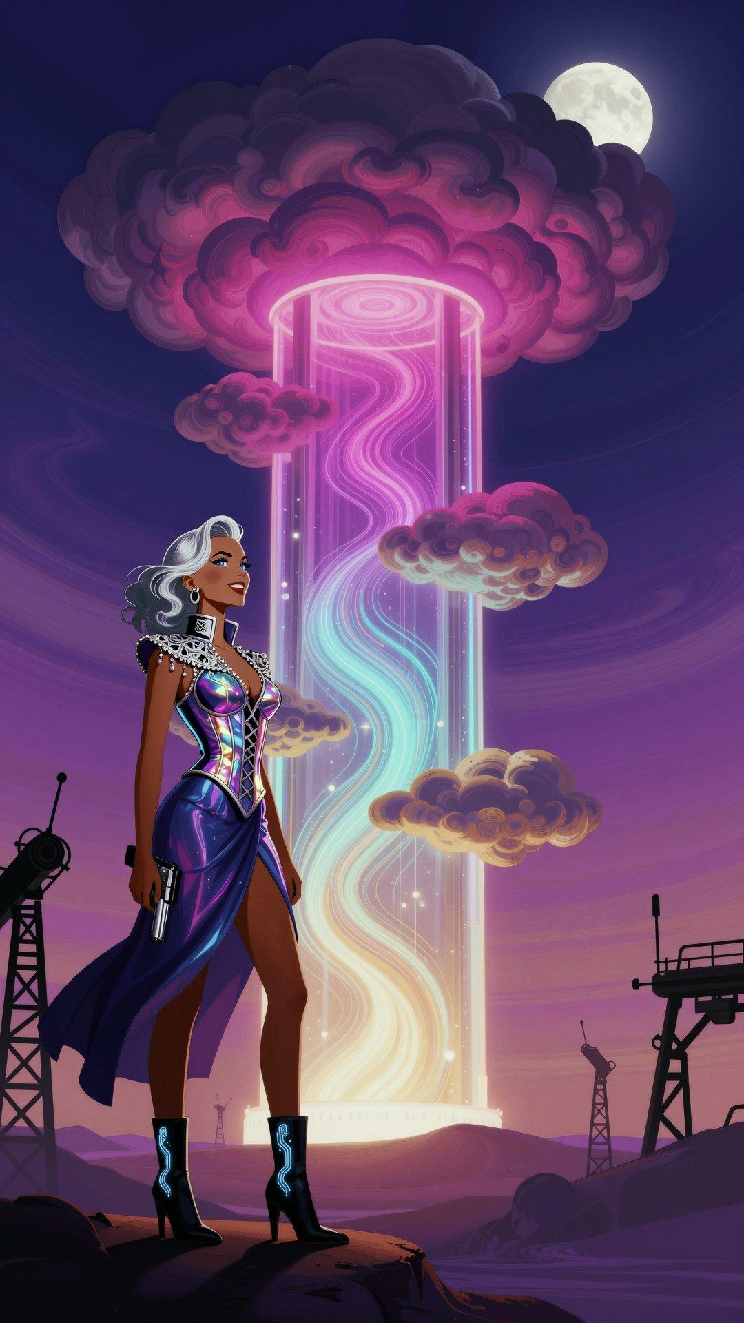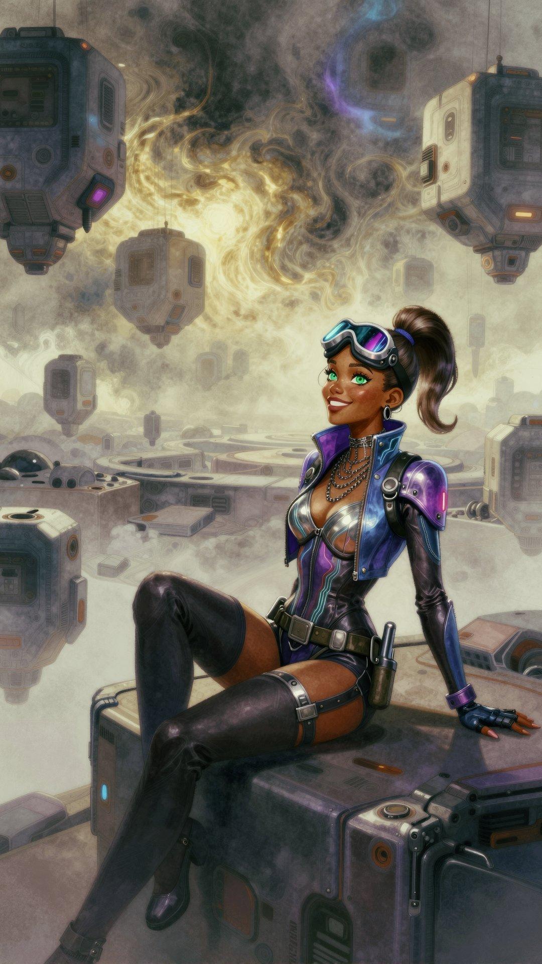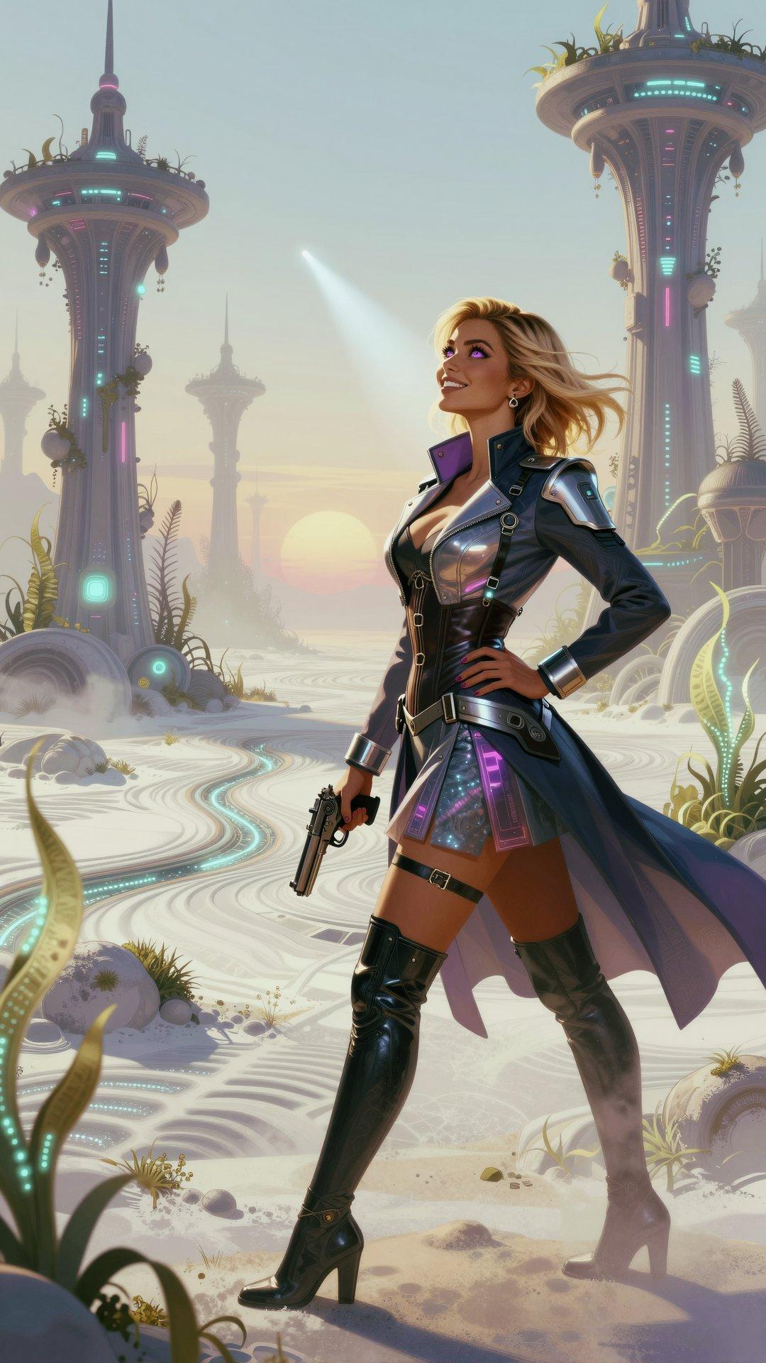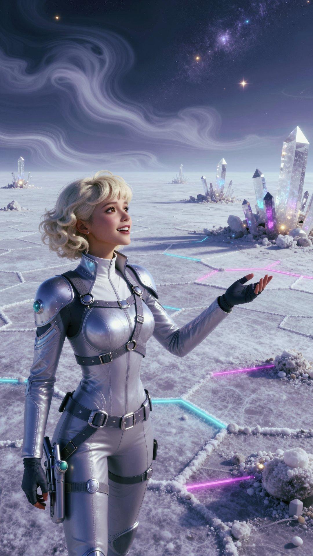 She is wearing @<fashion: sexy retro-futuristic science fiction
