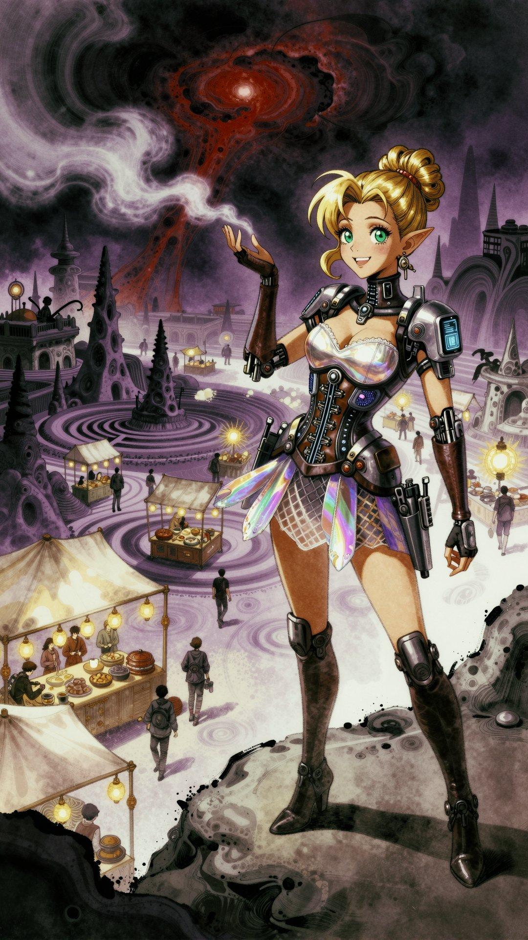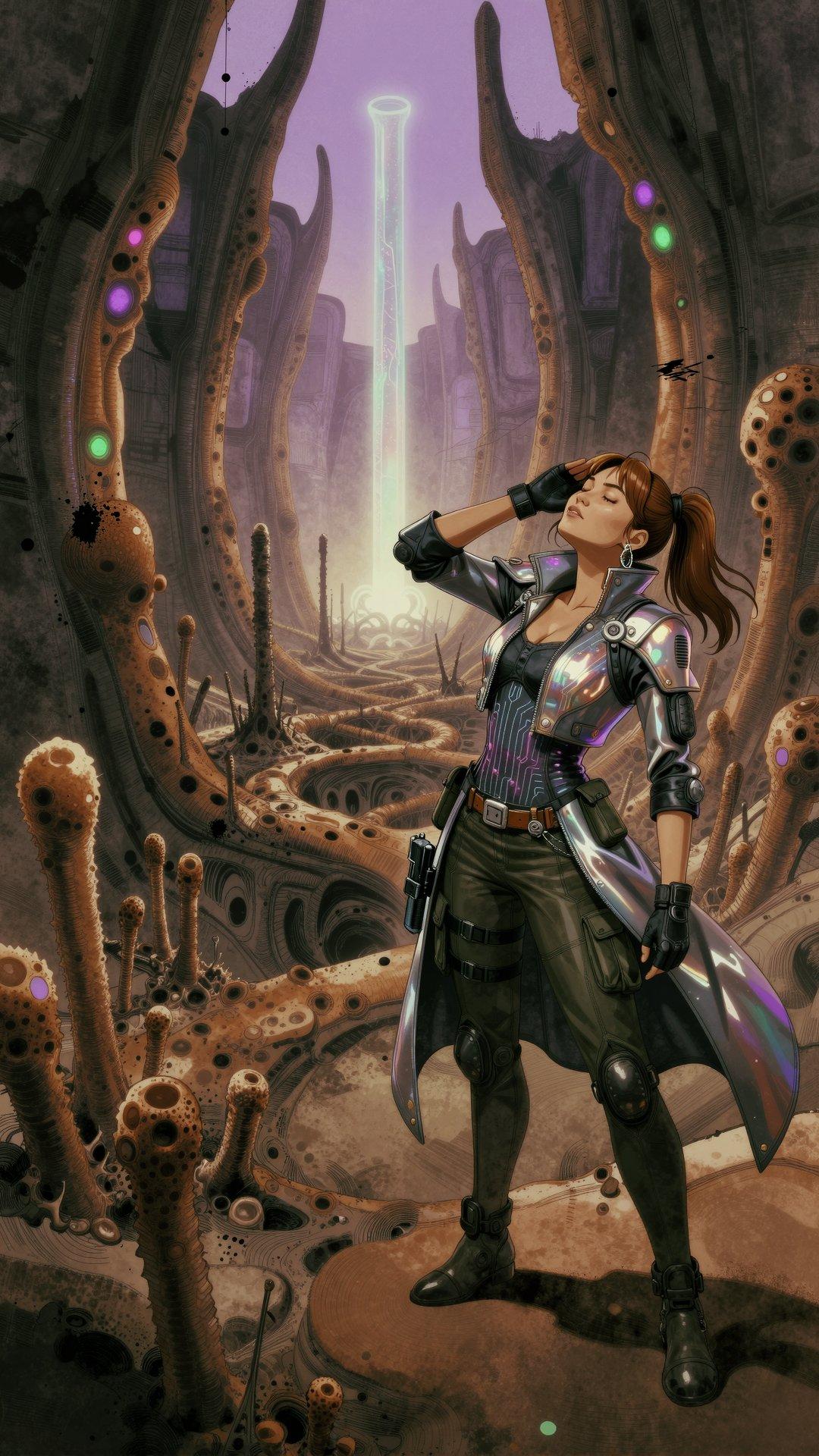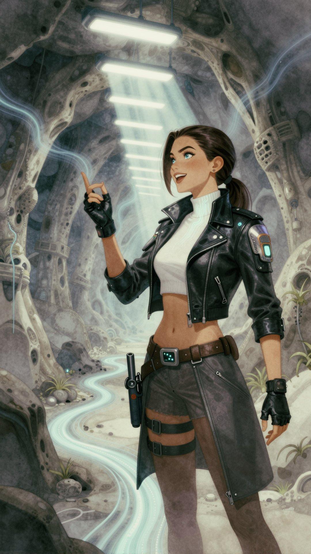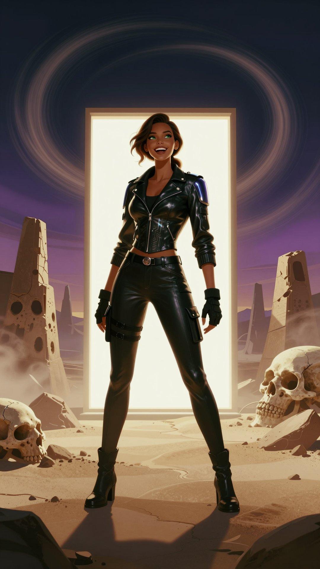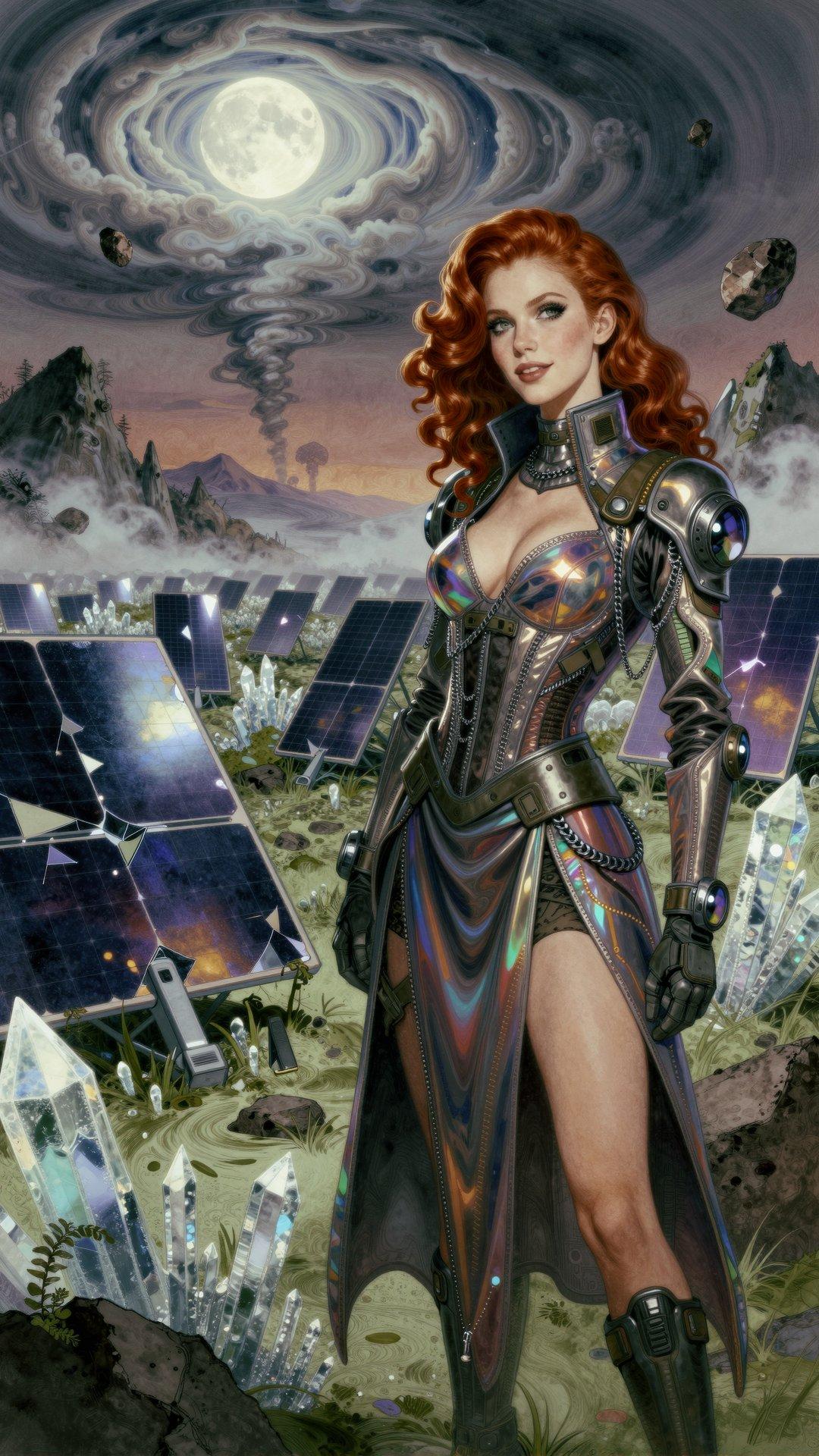 She is wearing @<fashion: sexy retro-futuristic science fiction
