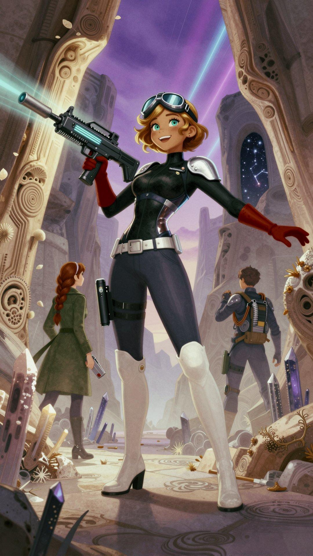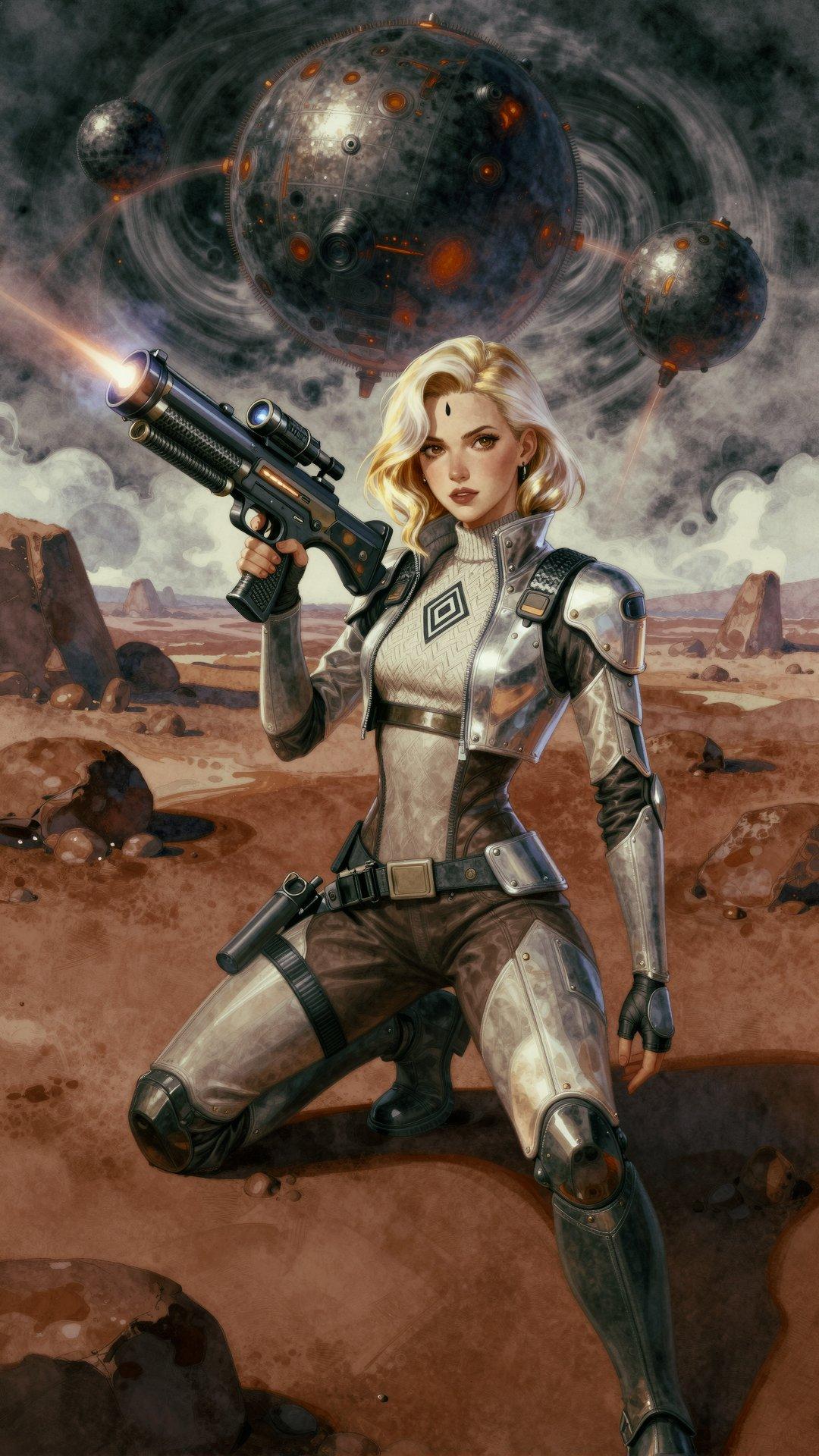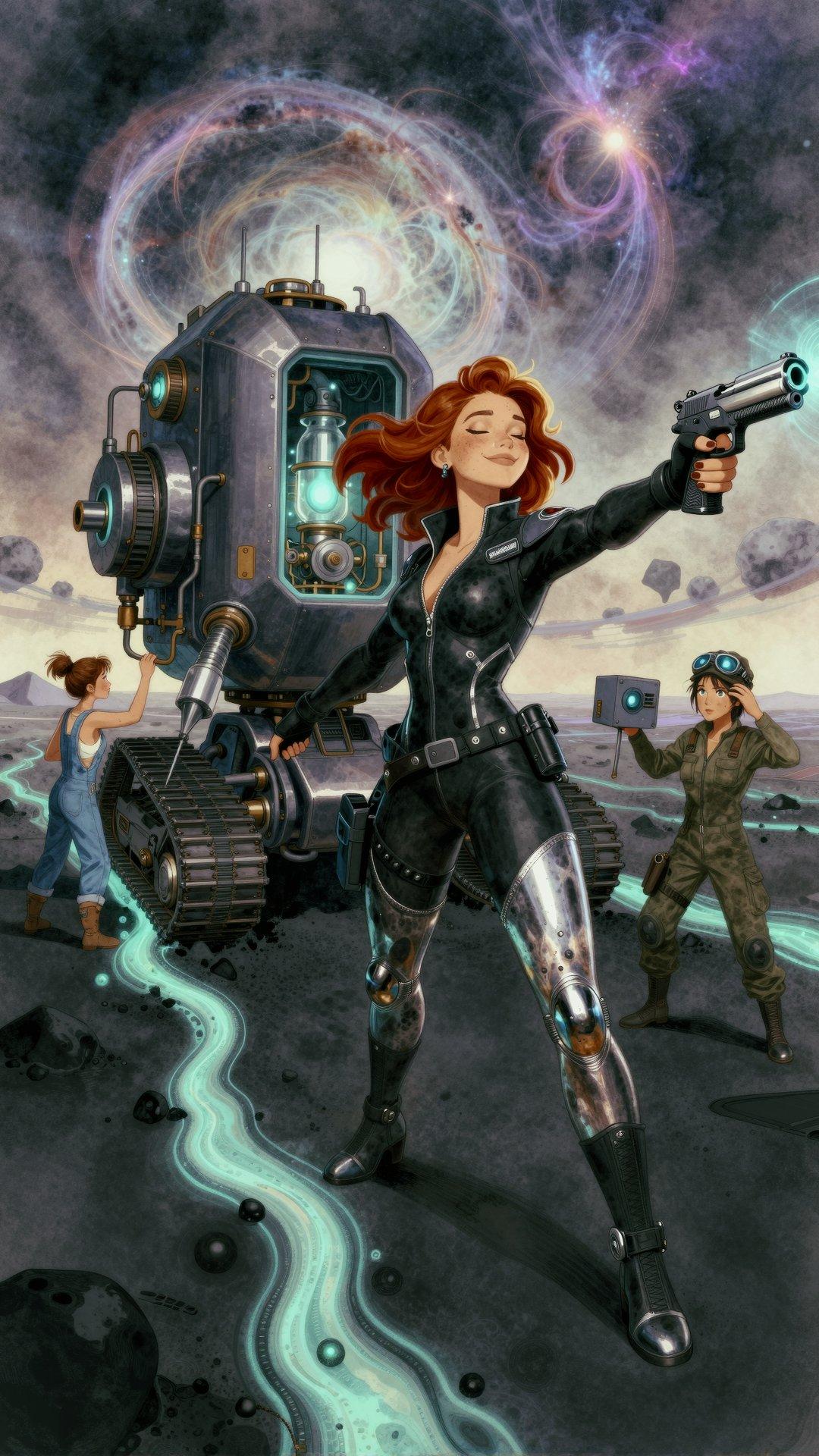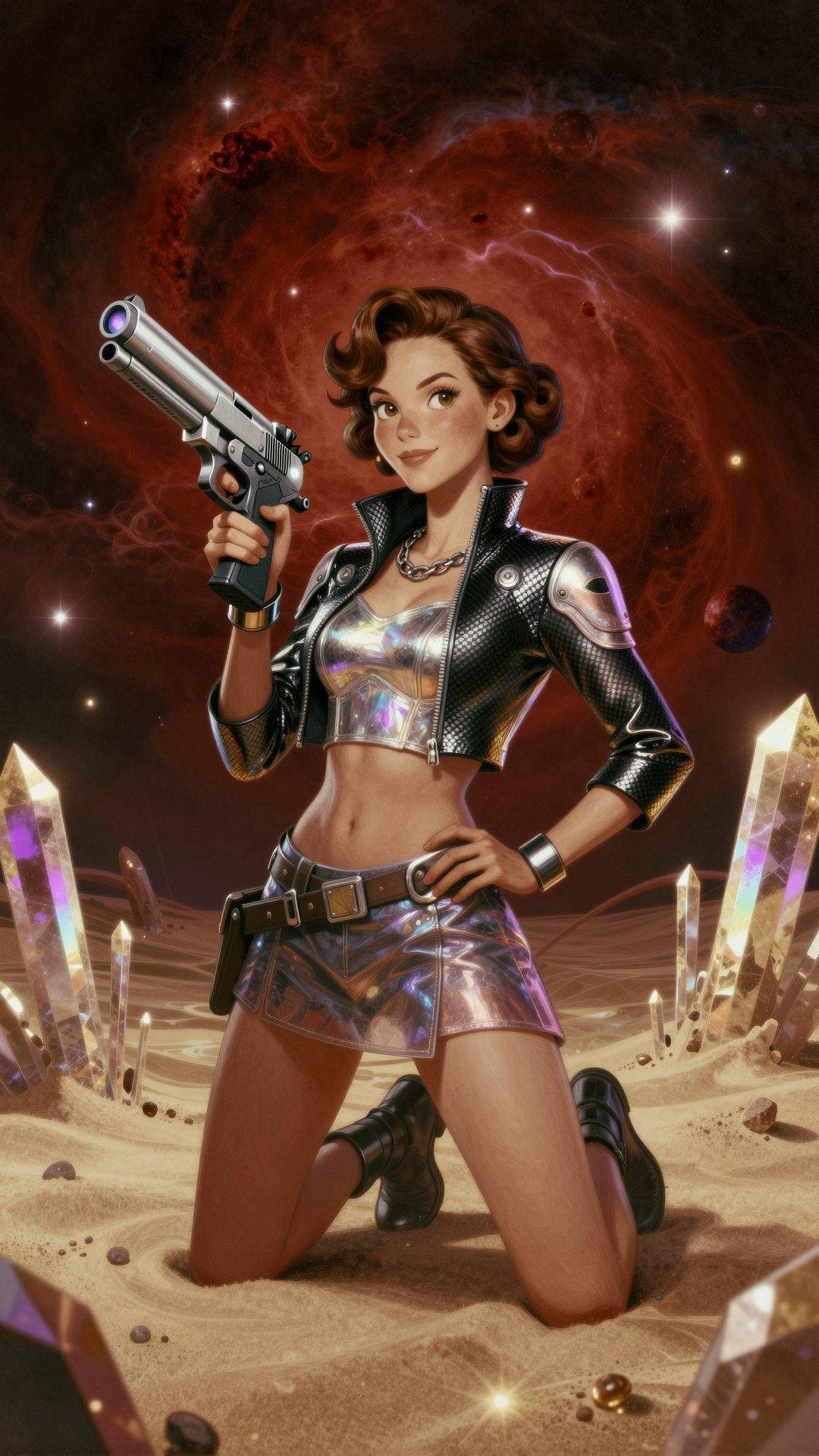 (all she needs is a slogan in the empty space, “She wants YOU for The Space Corps”)