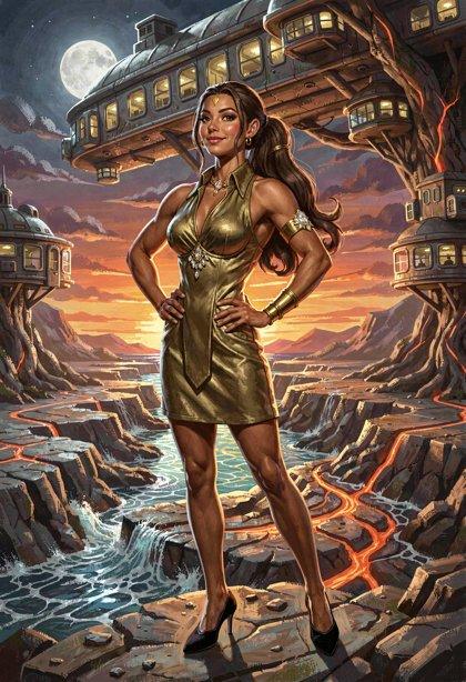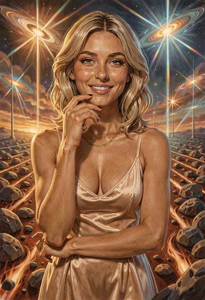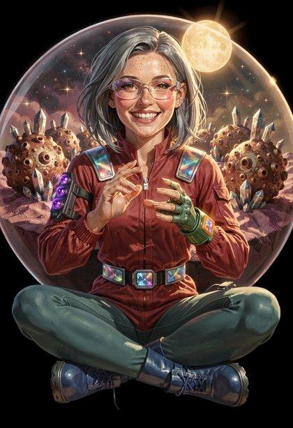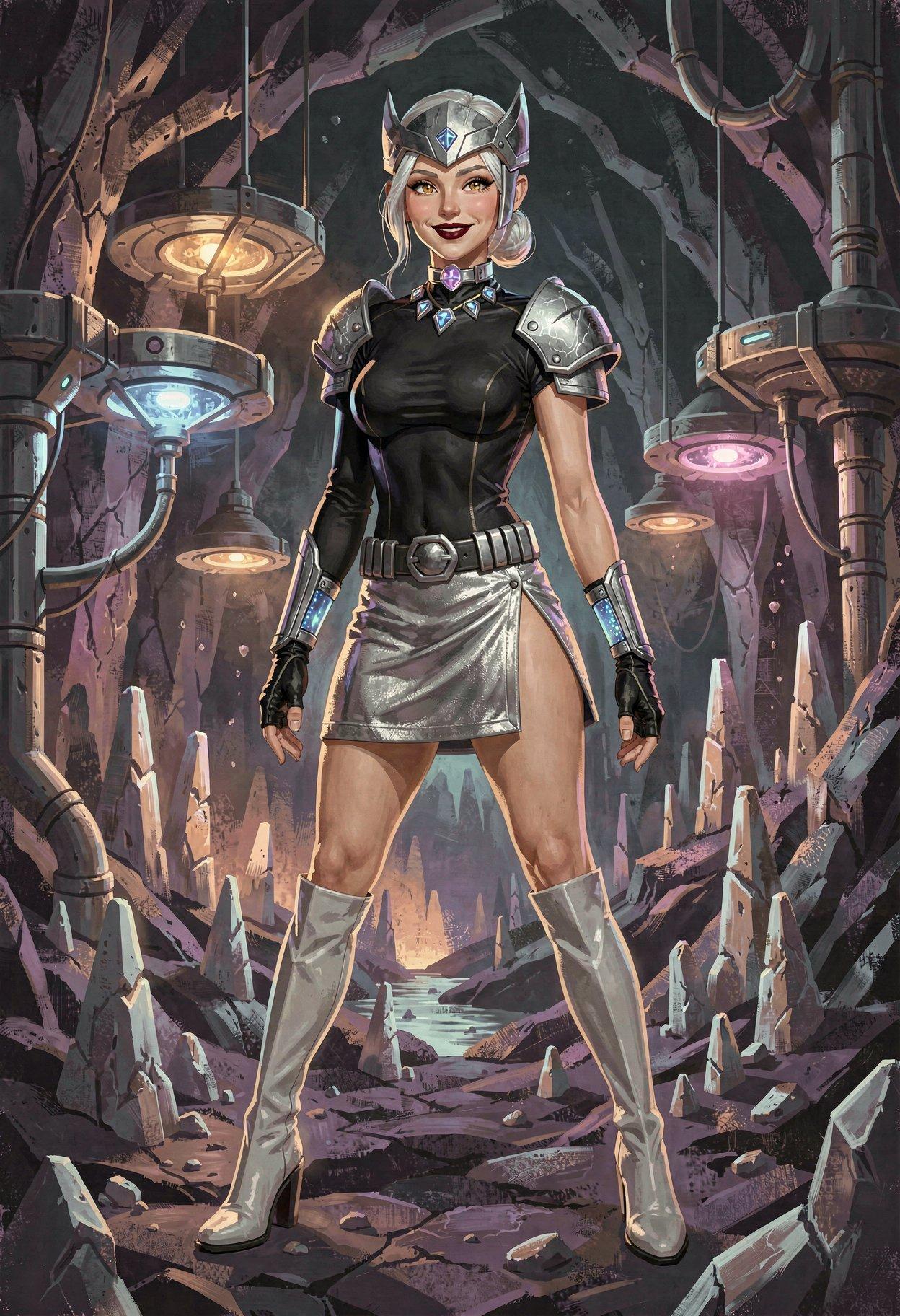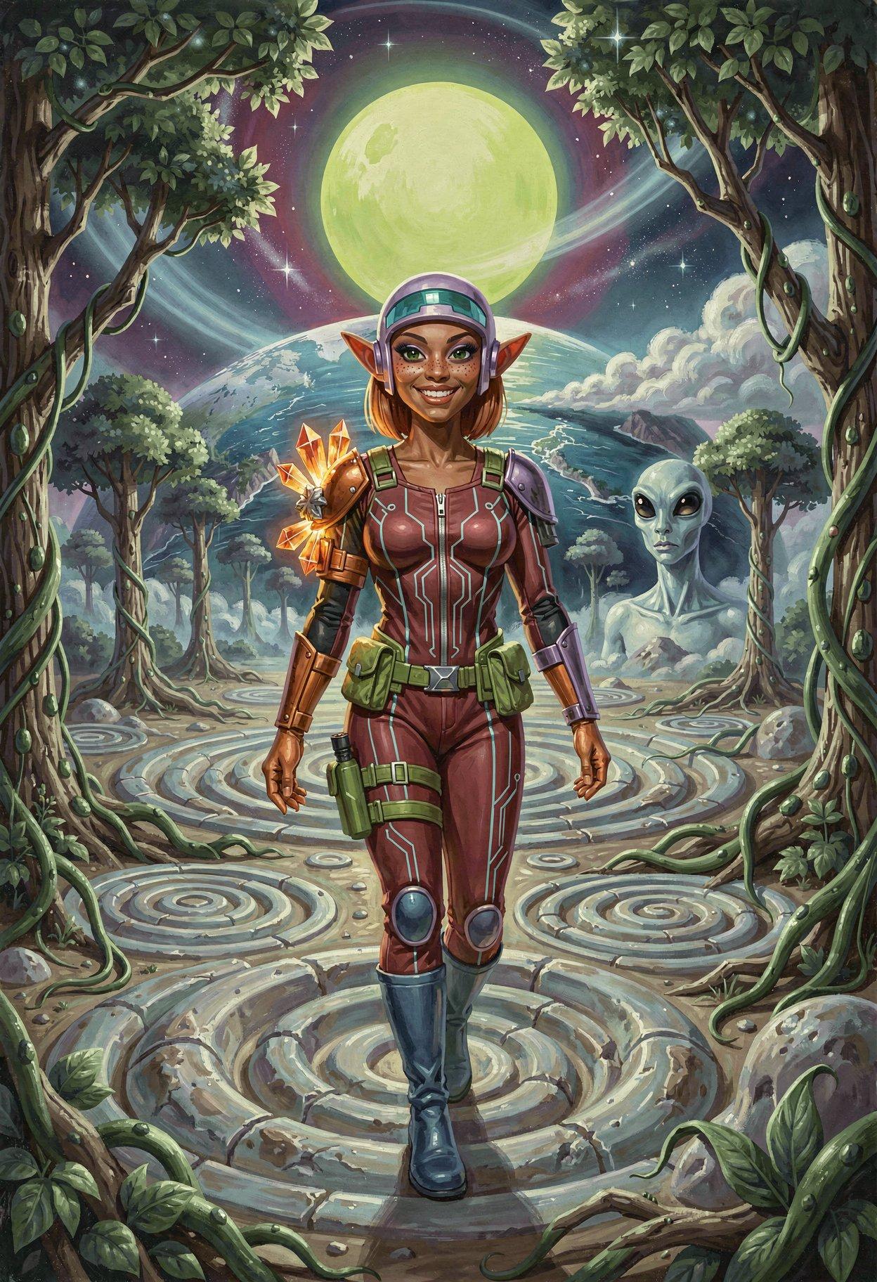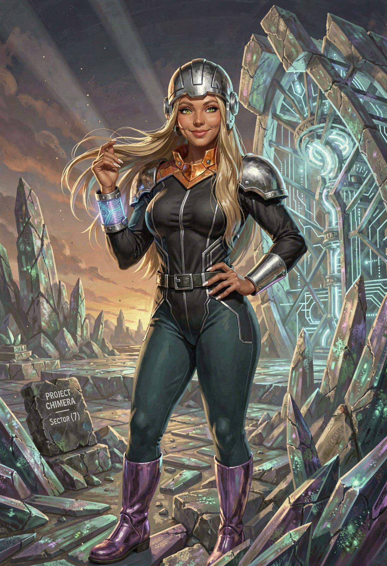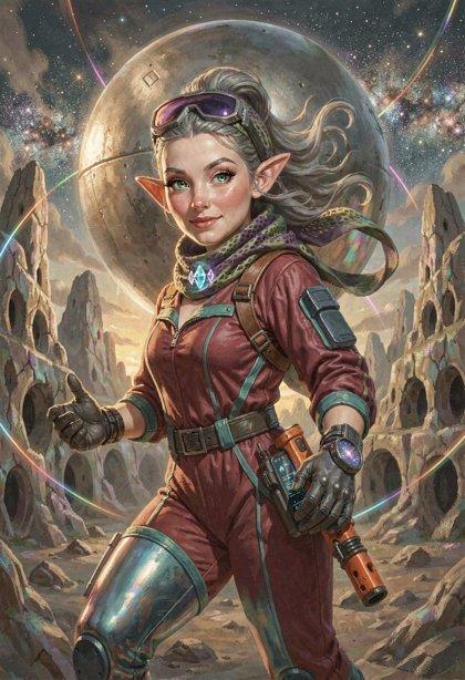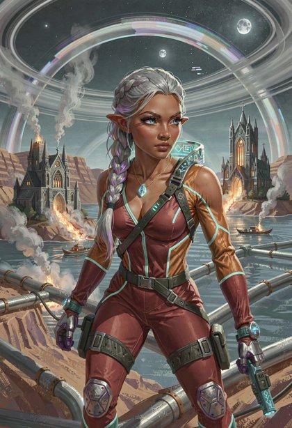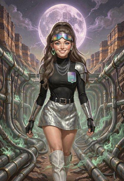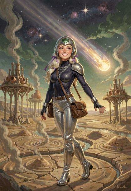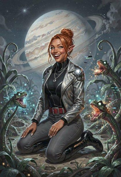 I liked the styling I was getting from Klein, so I tried some new LLM-enhanced dynamic prompts, shooting for the feel of a good-looking gal on the cover of a paperback where the author’s name isn’t well-known enough to make the sale. The initial batch had them in lingerie, because that’s where I got the horned horny covergal from the previous post, but I decided to see if Klein did as well at the “retro-SF uniform” look as ZIT did the last time I tried it.