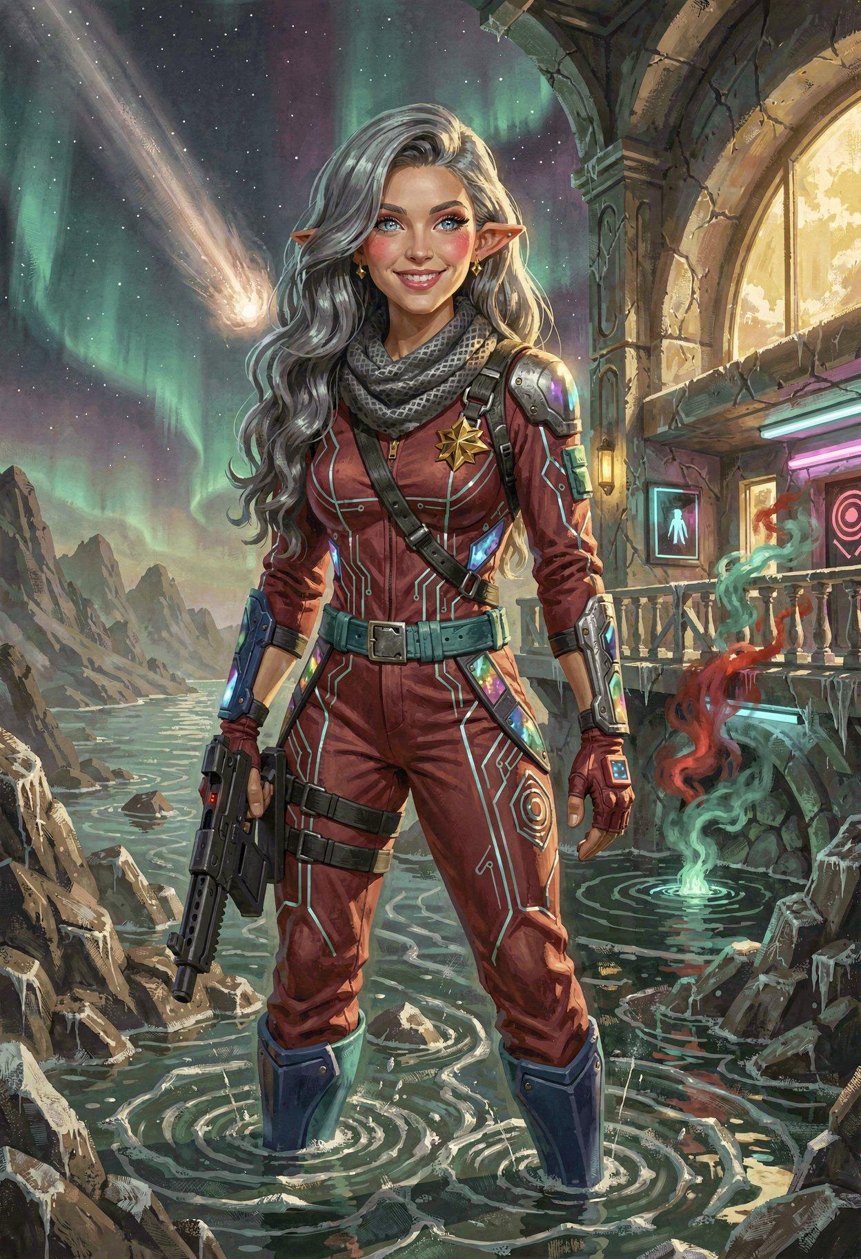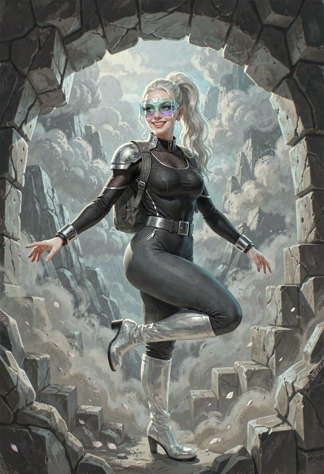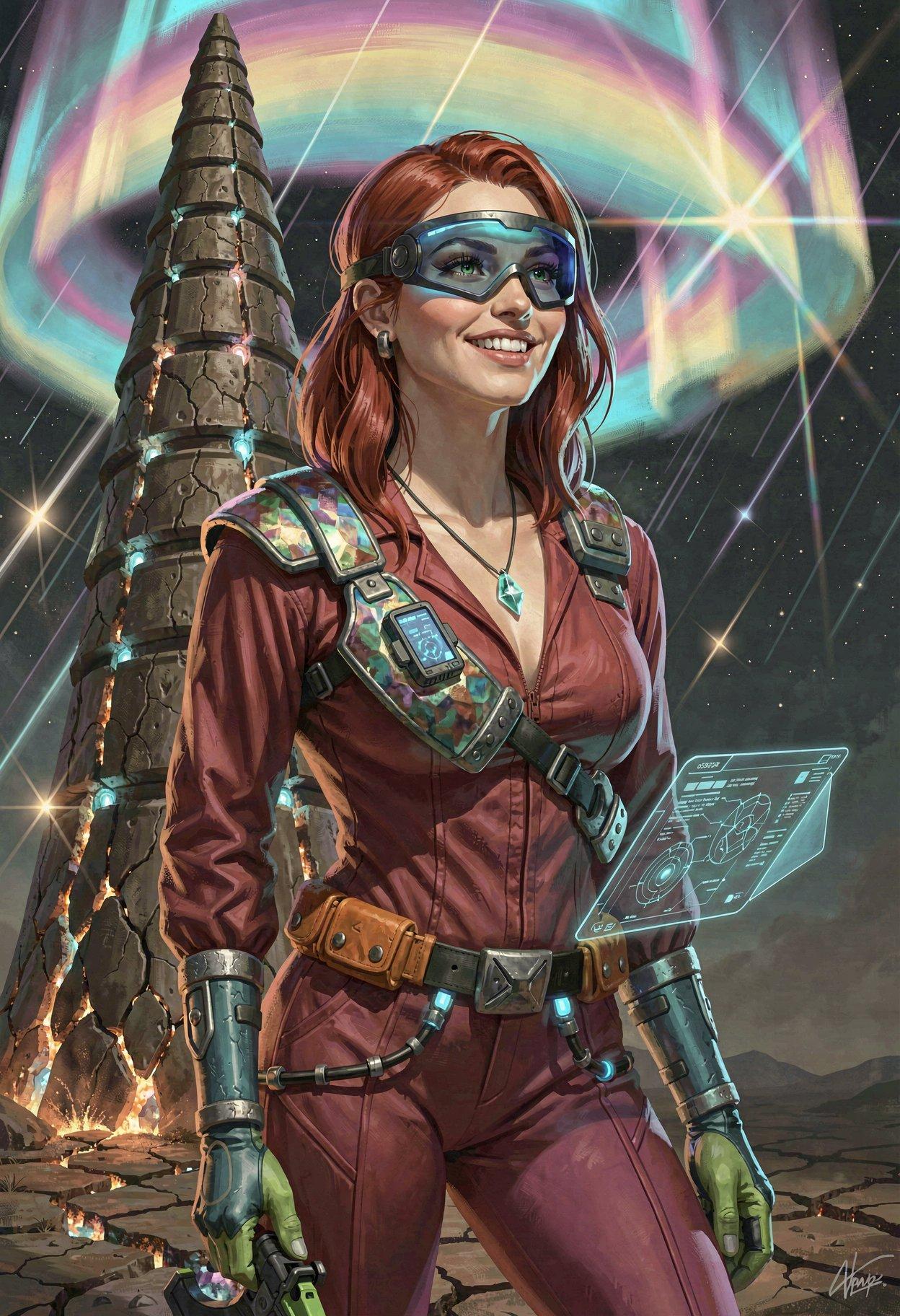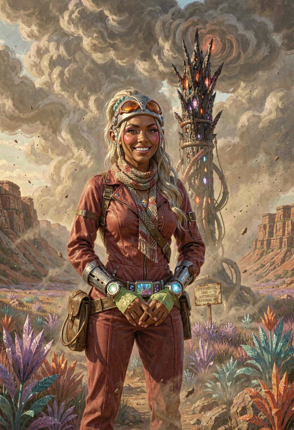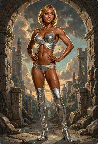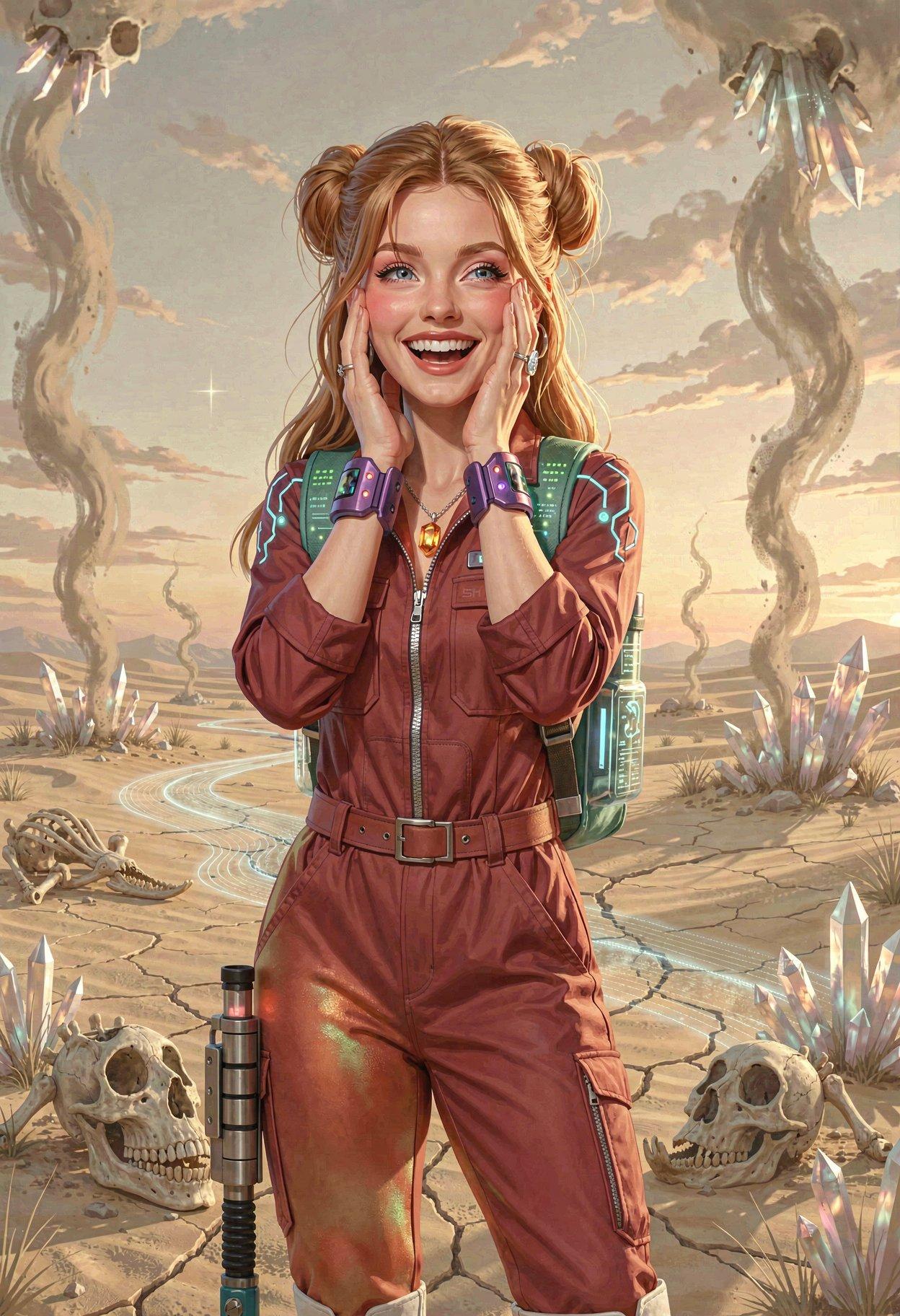 I liked the styling I was getting from Klein, so I tried some new LLM-enhanced dynamic prompts, shooting for the feel of a good-looking gal on the cover of a paperback where the author’s name isn’t well-known enough to make the sale. The initial batch had them in lingerie, because that’s where I got the horned horny covergal from the previous post, but I decided to see if Klein did as well at the “retro-SF uniform” look as ZIT did the last time I tried it.