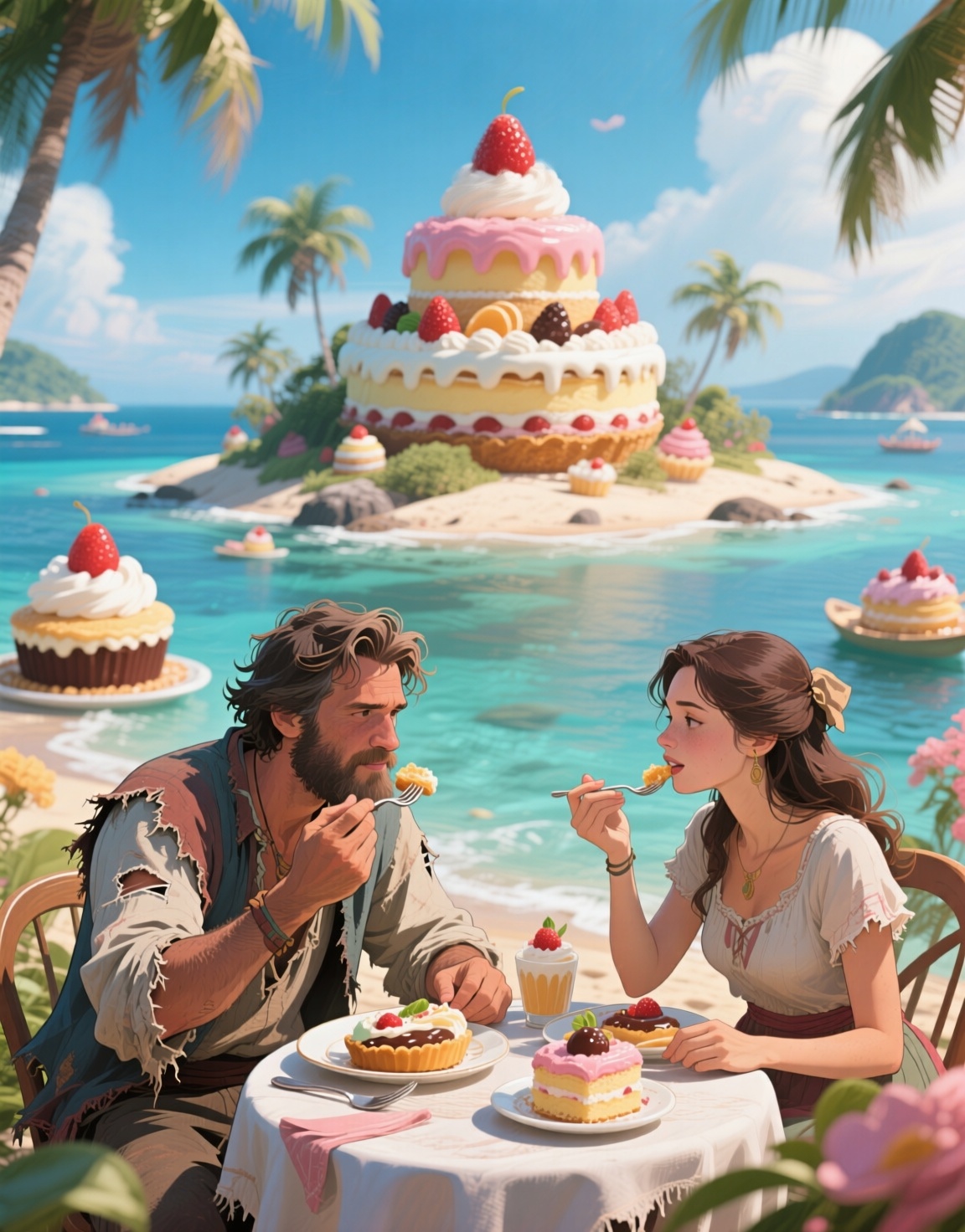 (the current SwarmUI Discord theme is “desserts”, and Qwen Image knew exactly what to so with “stranded on a dessert island”…)
